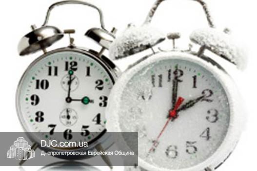Ночью с субботы на воскресенье, 27 октября (23 хешвана) в 4 утра официальное время в Украине сдвигается на один час назад (так называемый переход на «зимнее» время). Этот процесс осуществляется в соответствии с мнемотехническим способом определения передвижения стрелок – ВВ/ОО, то есть «Весной Вперед – Осенью Обратно».