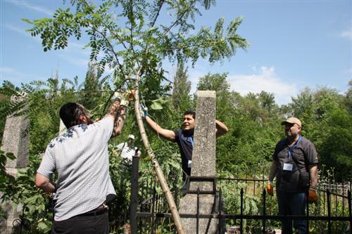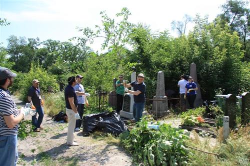 Очень яркой и впечатляющей стала акция уборки участков старого еврейского кладбища, что на жилмассиве Западный. Вначале управляющий делами еврейской религиозной общины и руководитель погребального братства «Хевра Кадиша» Александр Фридкис рассказал американским, израильским и днепропетровским молодым лидерам об истории кладбища, о замечательных людях, покоящихся здесь, о том, как активисты общины перезахоранивали прах Днепропетровского раввина Пинхаса Гельмана, и о том, как «Хевра Кадиша» установила на его могиле памятник.
