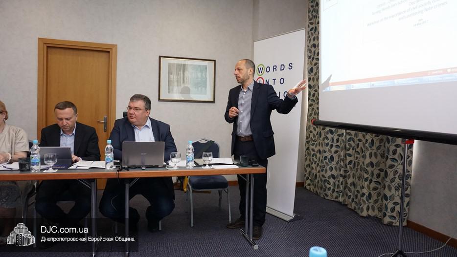 После кратких приветствий почетных гостей, основные доклады представили Максим Васин, исполнительный директор общественной организации «Институт религиозной свободы», и Вячеслав Лихачев, руководитель «Группы мониторинга прав национальных меньшинств Конгресса национальных общин Украины», которая считается наиболее авторитетной негосударственной украинской структурой по вопросам преступлений на почве ненависти.