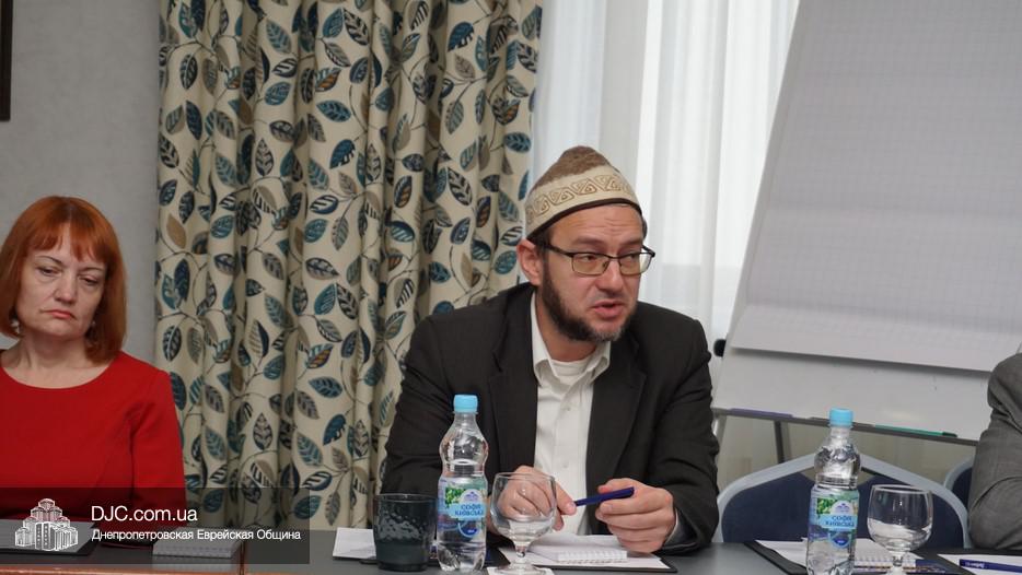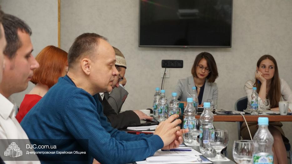 В работе круглого стола приняли участие представители некоторых еврейских, мусульманских и протестантских религиозных структур, общественных организаций и иных институтов гражданского общества, а также эксперты по этой проблематике и те, кто непосредственно занимаются этой сферой. Так, город Днепр представлял советник городского головы по вопросам национальностей и религий, член правления еврейской общины Олег Ростовцев.