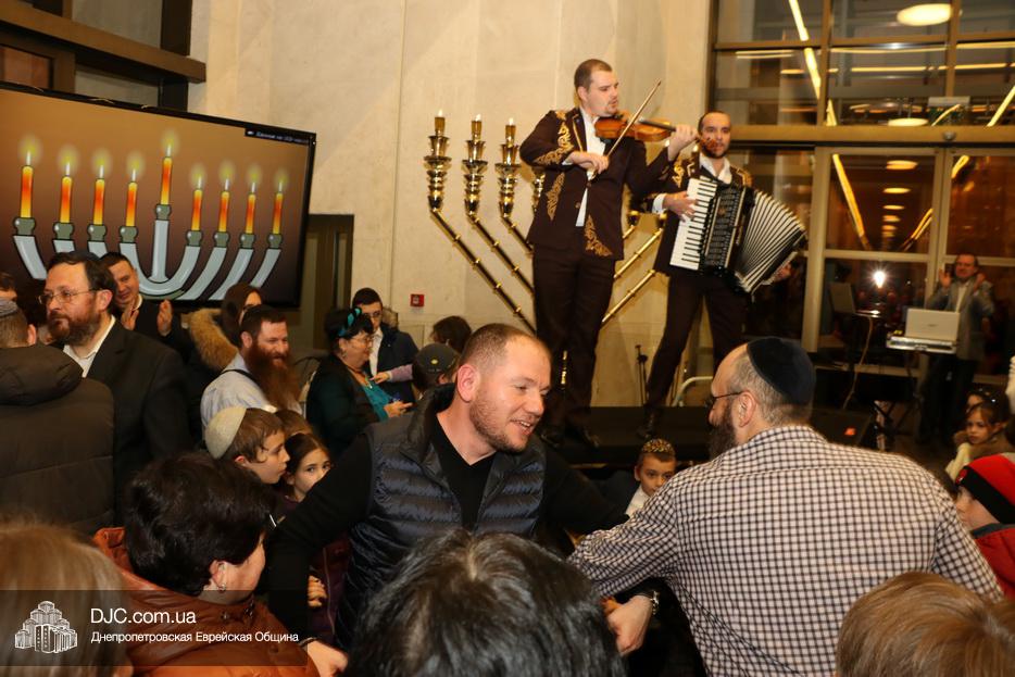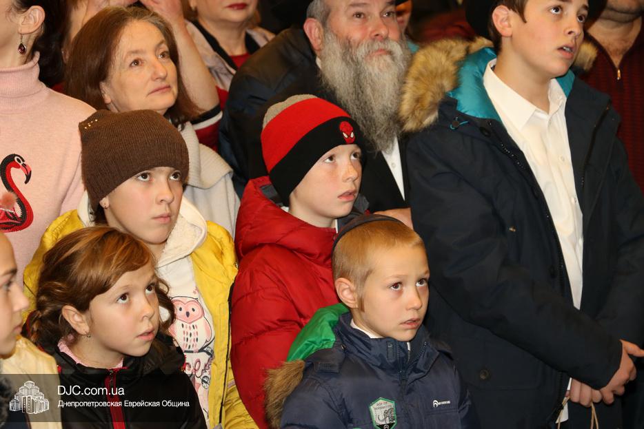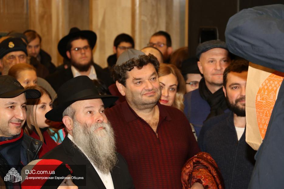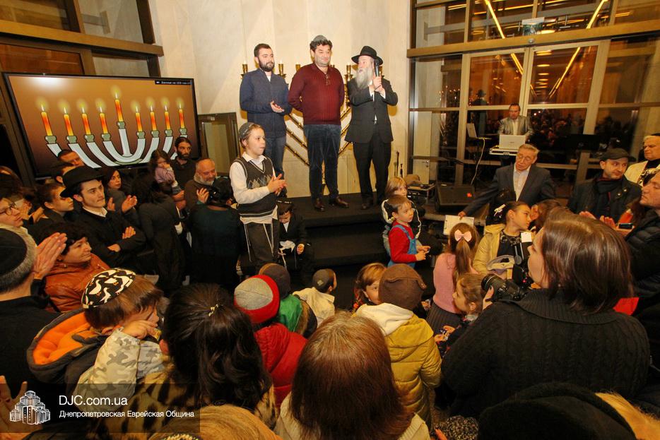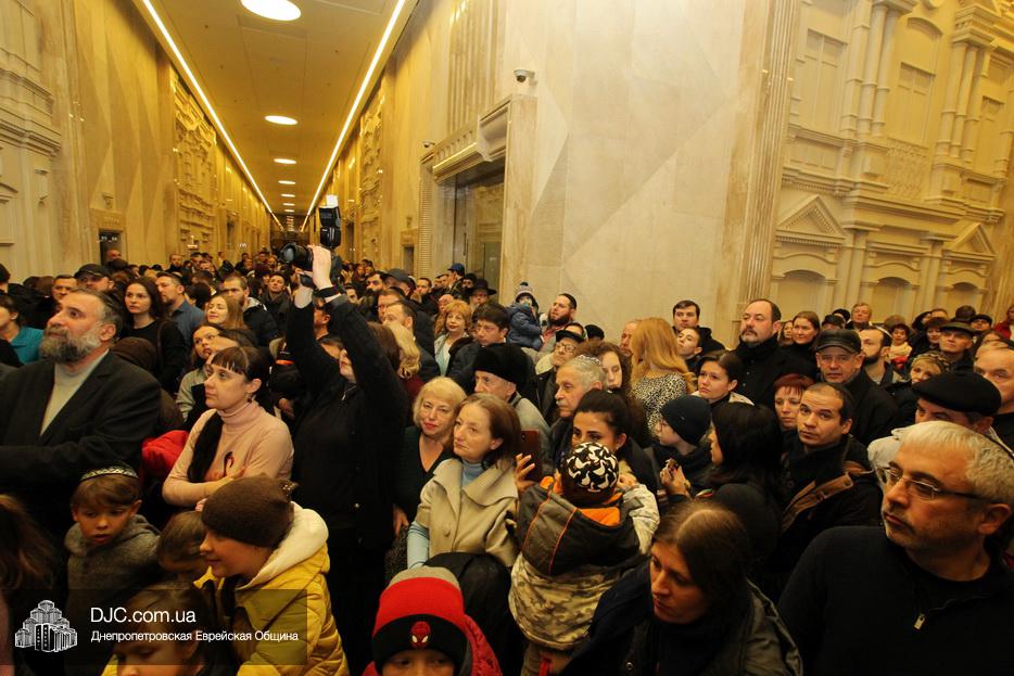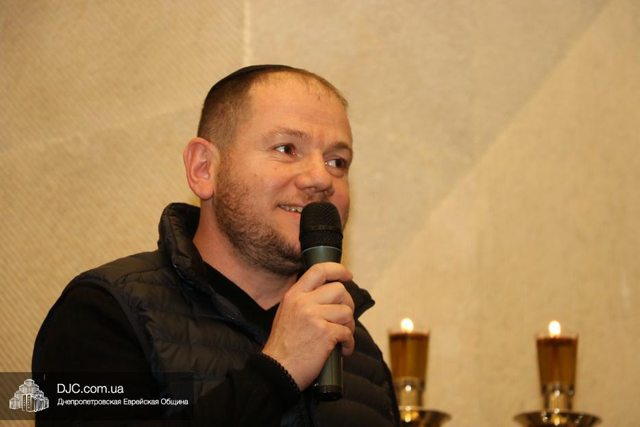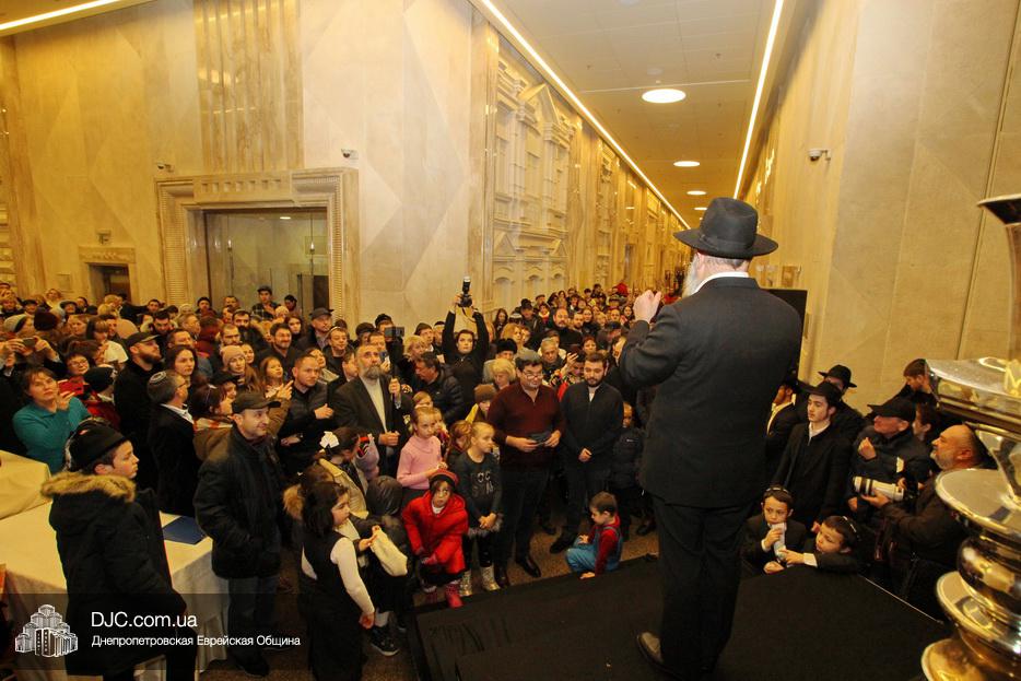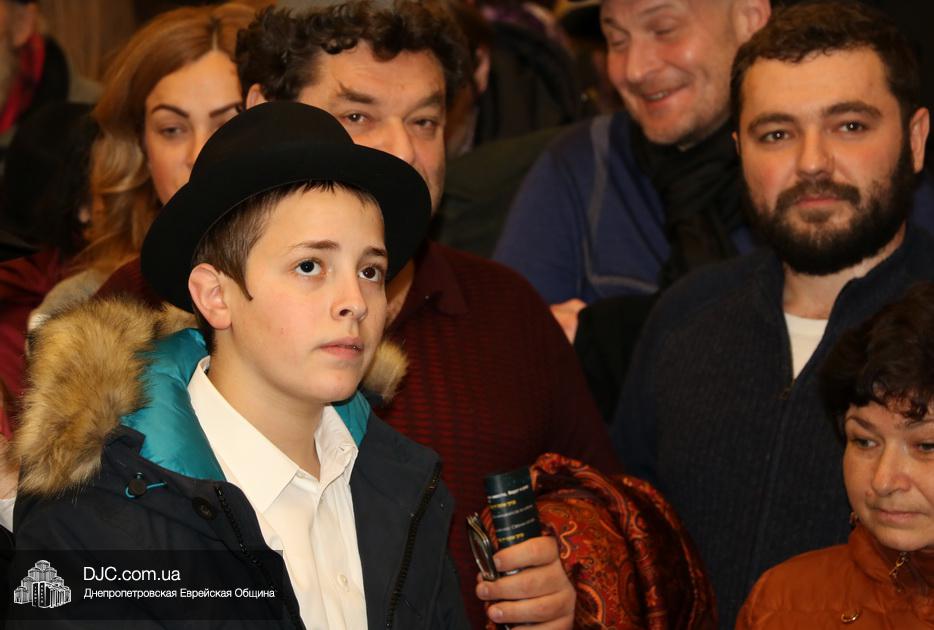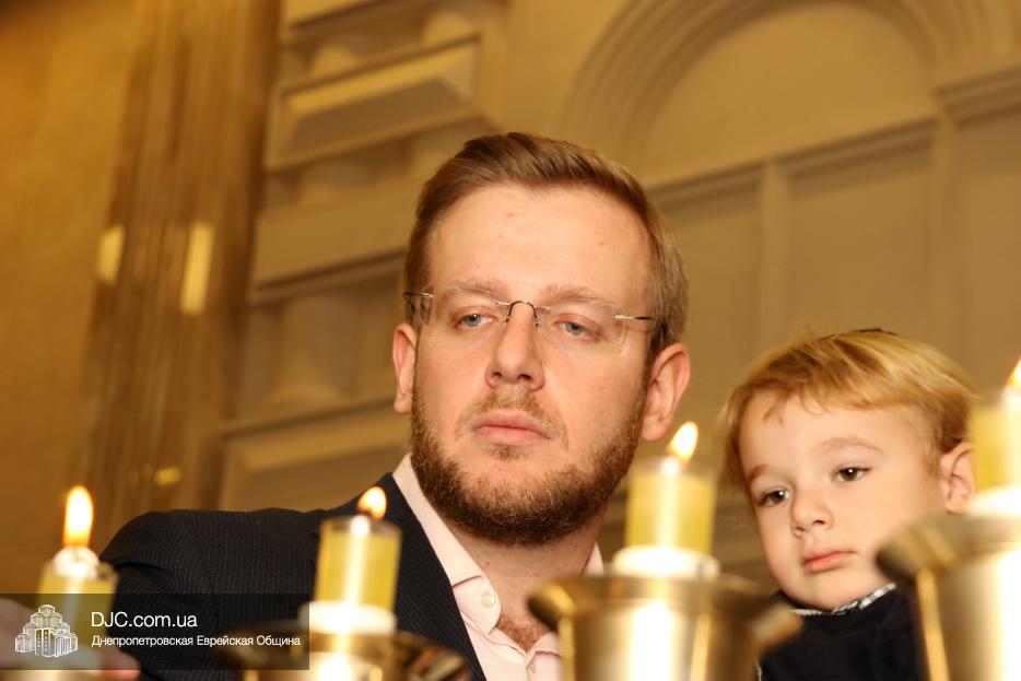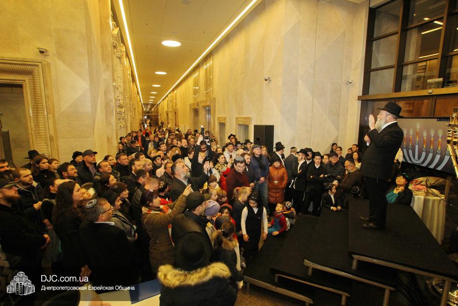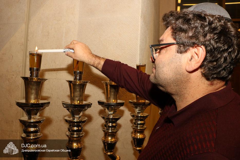 Перед церемонией зажжения еврейскую общину Днепра тепло поприветствовал Главный раввин Днепра и региона Шмуэль Каминецкий, который представил и рассказал о заслугах человека, которому предоставлена честь от имени всей общины выполнить эту важнейшую миссию – члена Попечительского Совета еврейской общины Днепра, господина Вадима Владимировича Ермолаева, который исполнил эту заповедь вместе со своим сыном Артуром (Борухом).