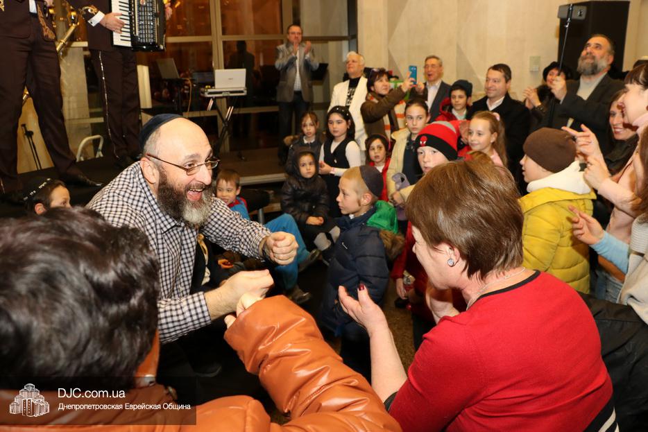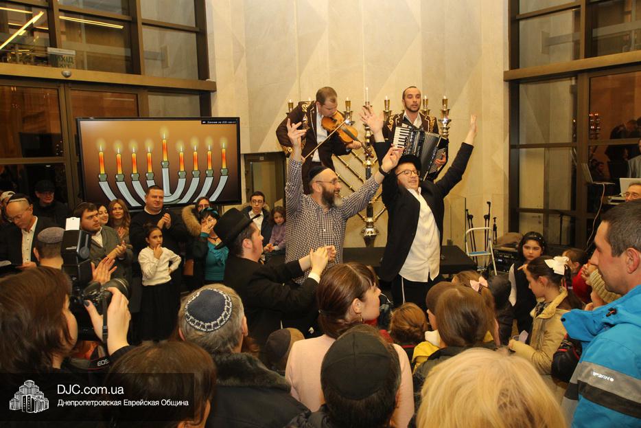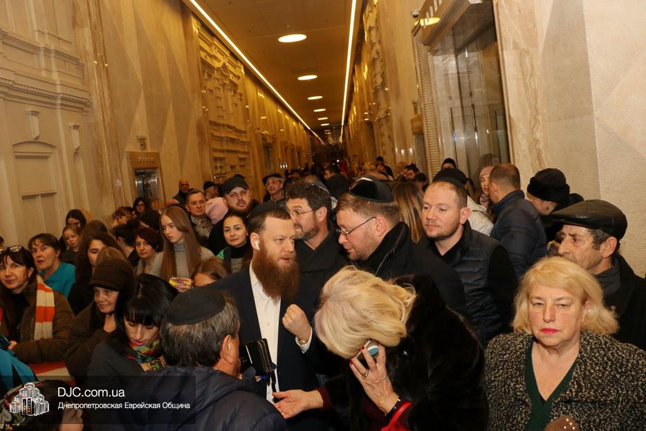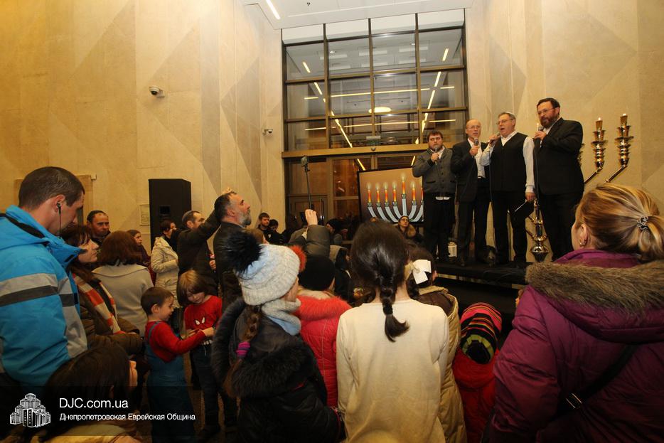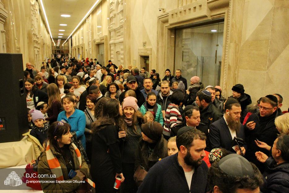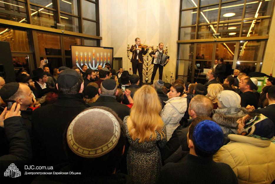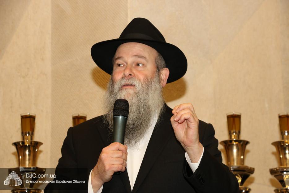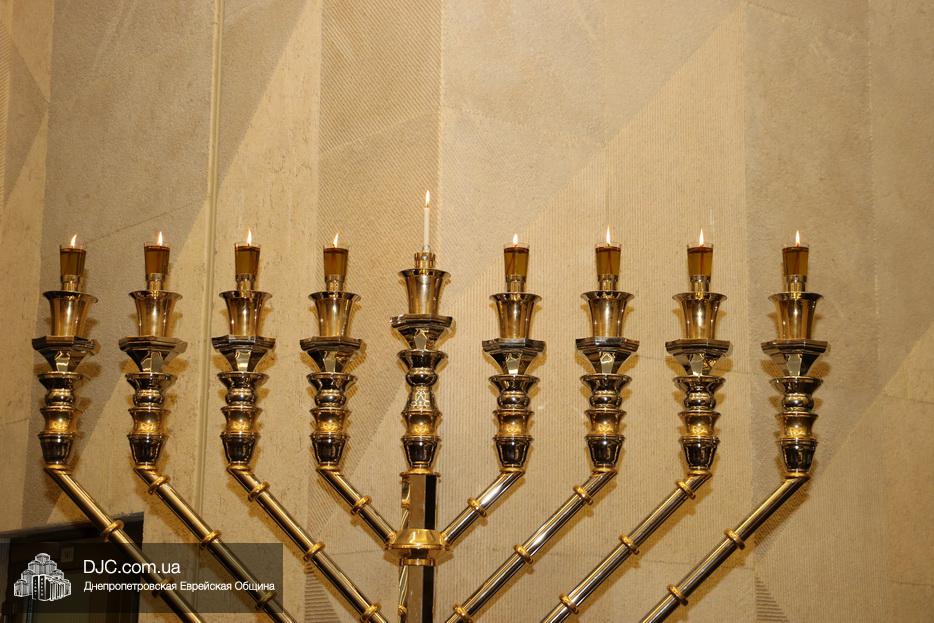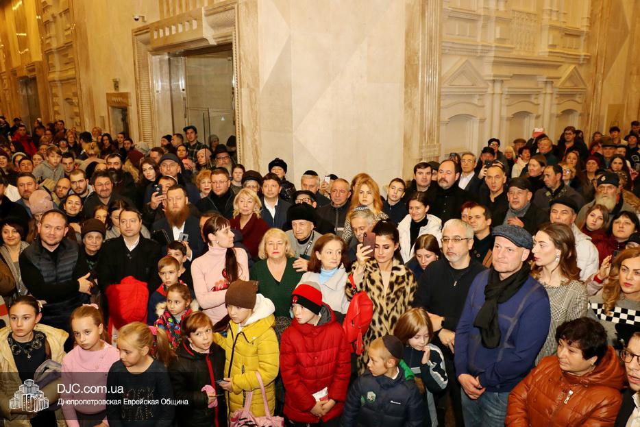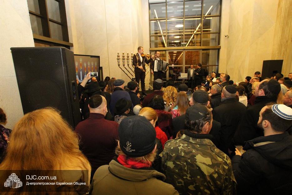 Перед церемонией зажжения еврейскую общину Днепра тепло поприветствовал Главный раввин Днепра и региона Шмуэль Каминецкий, который представил и рассказал о заслугах человека, которому предоставлена честь от имени всей общины выполнить эту важнейшую миссию – члена Попечительского Совета еврейской общины Днепра, господина Вадима Владимировича Ермолаева, который исполнил эту заповедь вместе со своим сыном Артуром (Борухом).