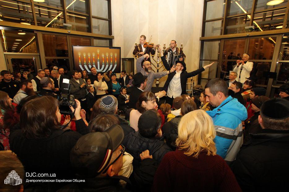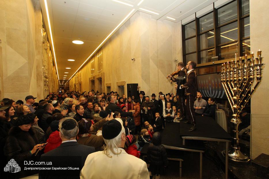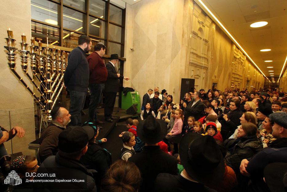 Главным событием восьмого вечера праздника Ханука в Днепре стало торжественное зажжение Главной Ханукии на перекрестке галерей крупнейшего в мире еврейского центра «Менора».