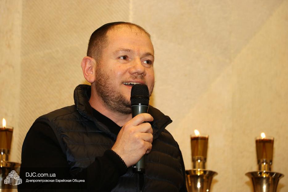 Далее еврейскую общину Днепра тепло поприветствовал региональный директор представительства «Джойнт» в Юго-Восточной Украине, господин Йони Лейфер. А затем с ежедневным словом на историческую тему к общине обратился Глава представительства филиала «Сохнут-Украина» Рафаэль Хельцер.