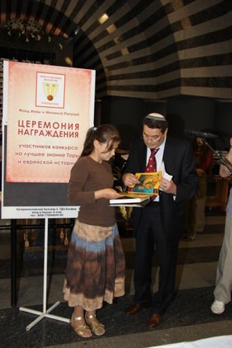 Фонд «Инны и Михаила Рогачий» в торжественной обстановке в центральной синагоге «Золотая Роза» вручил премию имени Анны Буяновер, которая была учреждена этим фондом для детей, воспитывающихся в пансионах еврейской общины, и которые показали особые успехи в изучении Торы и еврейской истории. Подробнее об условиях и истории создания премии наш сайт писал в феврале.