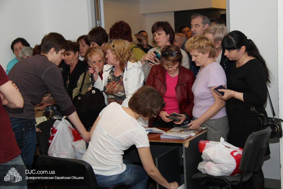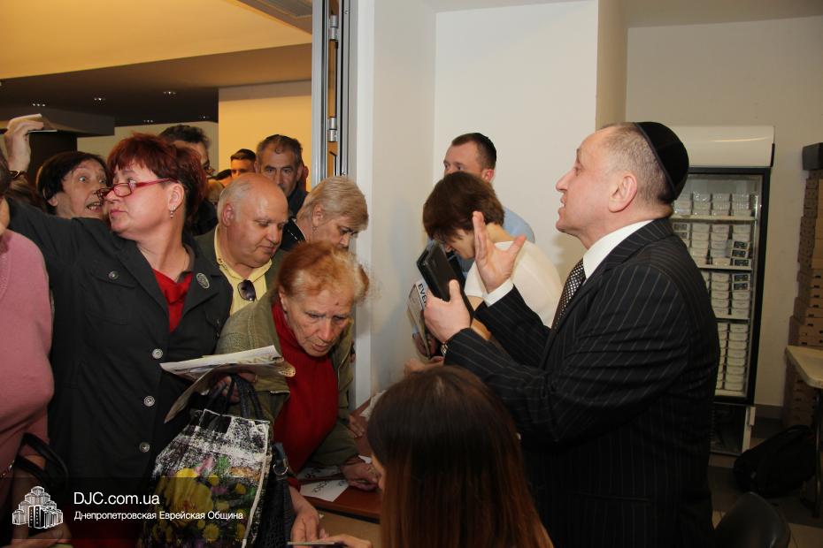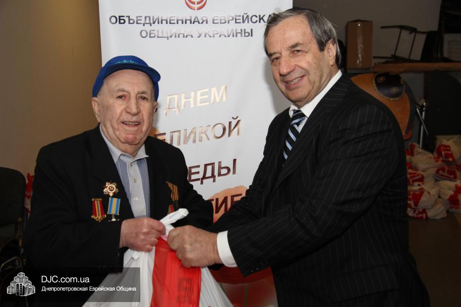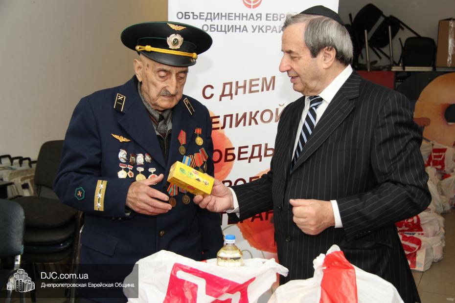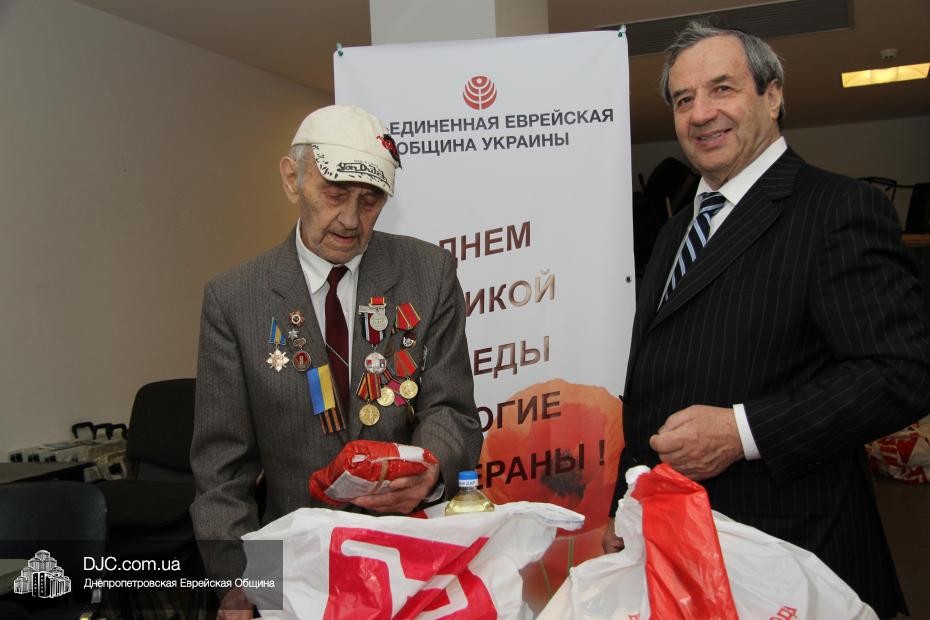 Председатель Совета евреев-ветеранов Соломон Киселевич Флакс рассказал, как и по каким критериям составлялись списки, в которые включены ветераны и участники боевых действий, а также Праведники народов мира, вдовы погибших воинов и члены их семей, родившиеся до 1933 года. Всего на учете в Совете евреев-ветеранов Днепропетровска таковых 826 человек, и все они получат подарок от ОЕОУ.