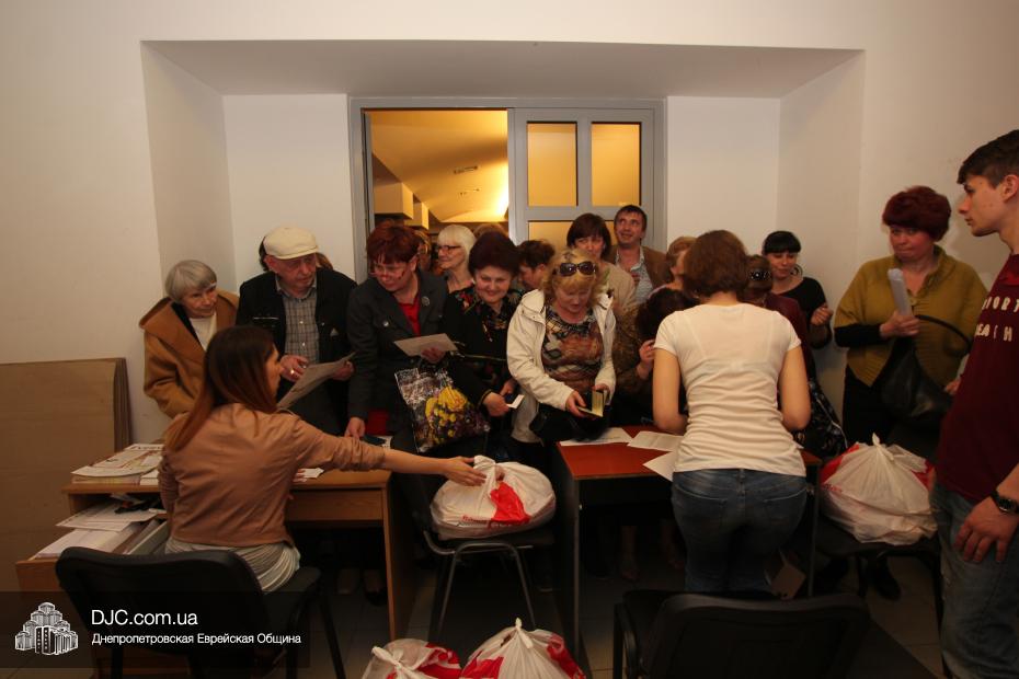 Игорь Романов, курирующий все крупные благотворительные выдачи в Днепропетровской еврейской общине, рассказал нашему сайту, что одиноким и малоподвижным ветеранам подарки отвезут волонтеры студенческого центра «Гилель». «Мы хотим, чтобы как можно большее количество получило эту помощь до 9 мая, поэтому основная выдача пройдет в два дня 7 и 8 мая. Мы попросили наших друзей из Хеседа, наших волонтеров сделать это максимально быстро, но если кто-нибудь и не успеет получить набор до праздника, он получит сразу после, но таких будет очень немного, уверяю вас. Набор очень хороший, в него входят: макароны, рис, фасоль и гречка, консервы, в том числе печень трески, подсолнечное масло, сгущенное молоко и сахар и, конечно же, чай, кофе, печенье шоколад и конфеты – чтобы праздник был сладким и вкусным. Кроме того, каждый получает конверт с финансовой помощью».