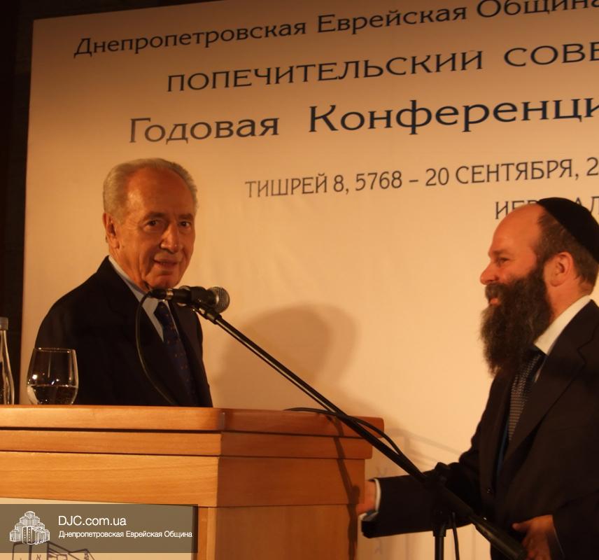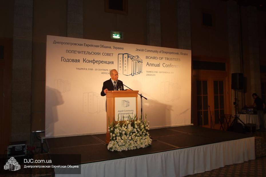Это заседание проходило в гостинице «Кинг Давид», у самых стен Старого Города, и Шимон Перес сказал много теплых слов о работе еврейской общины, тогда еще Днепропетровска, о том, что она является маяком для еврейских общин не только в постсоветских странах, но и для многих еврейских общин по всему миру.