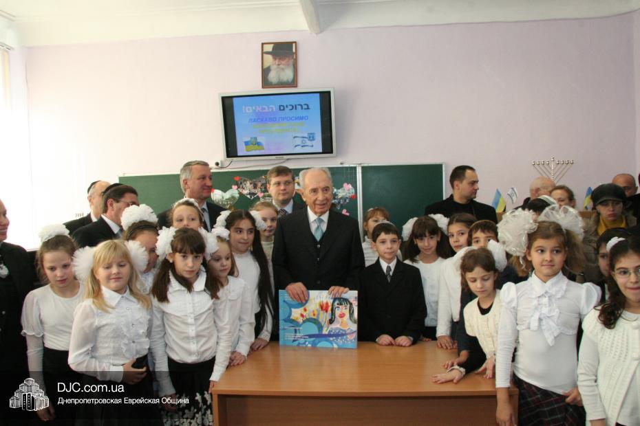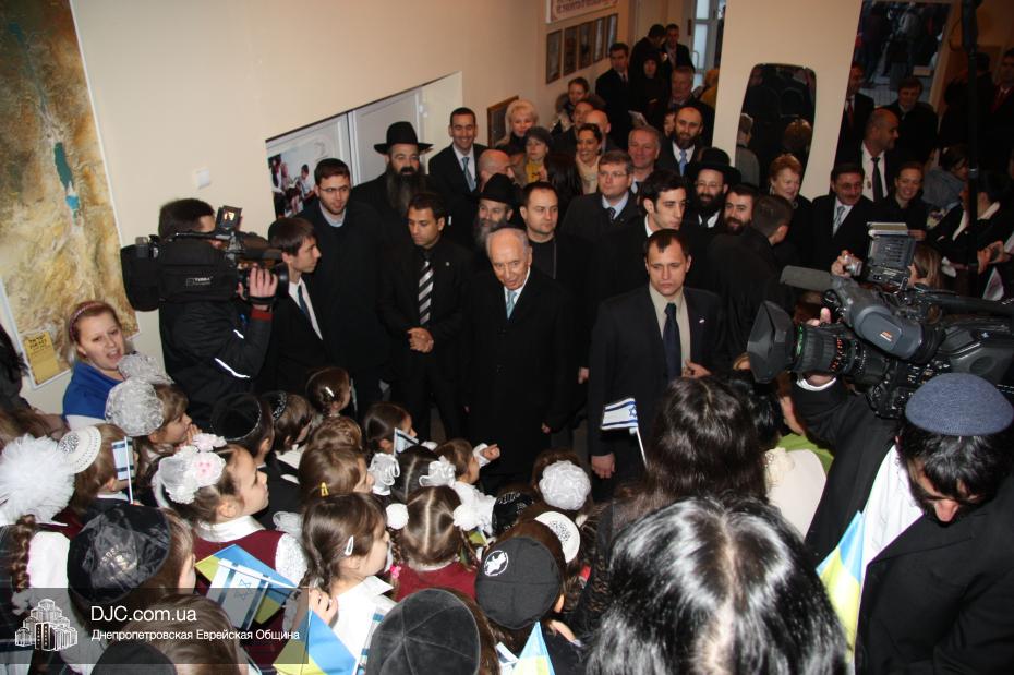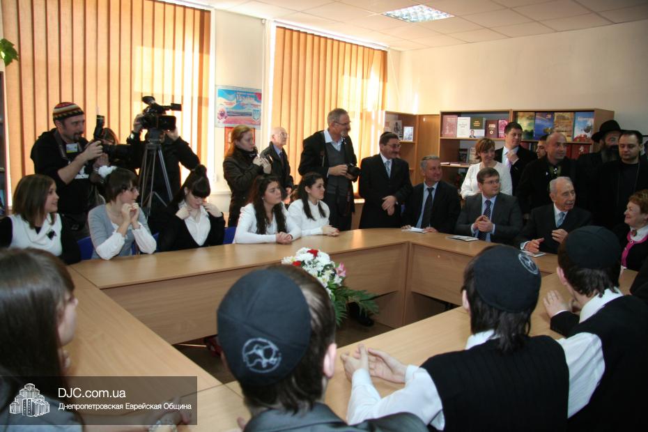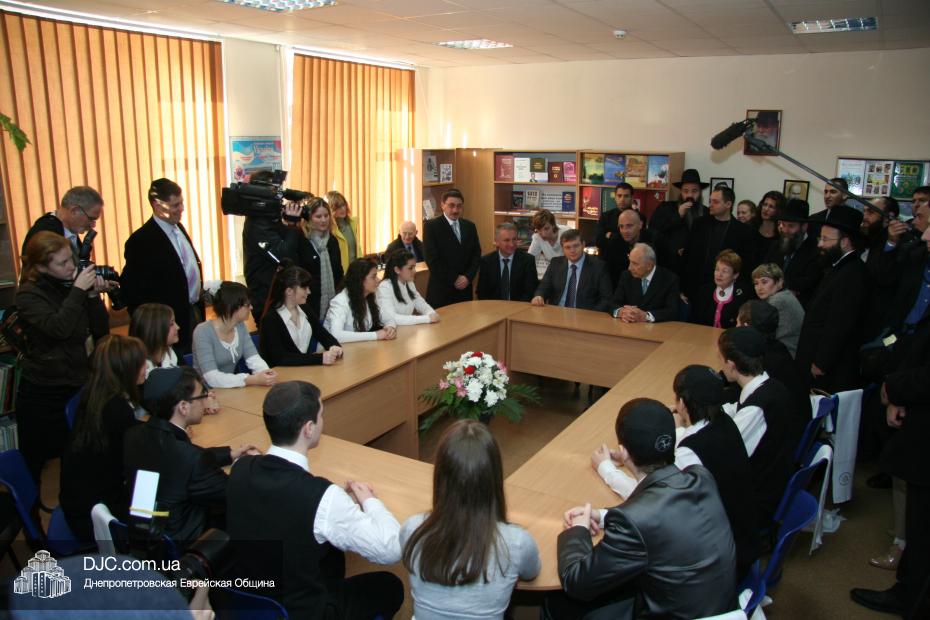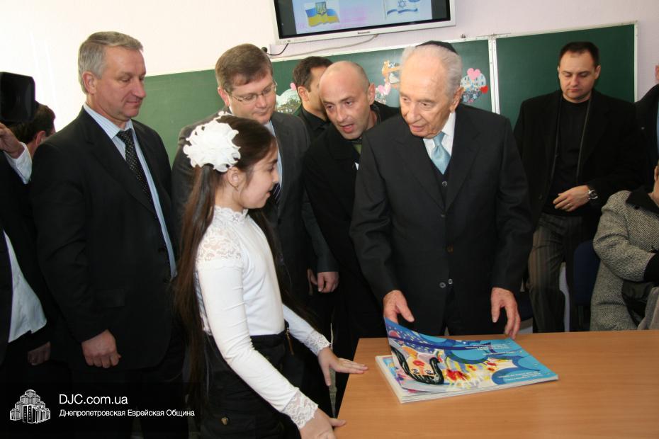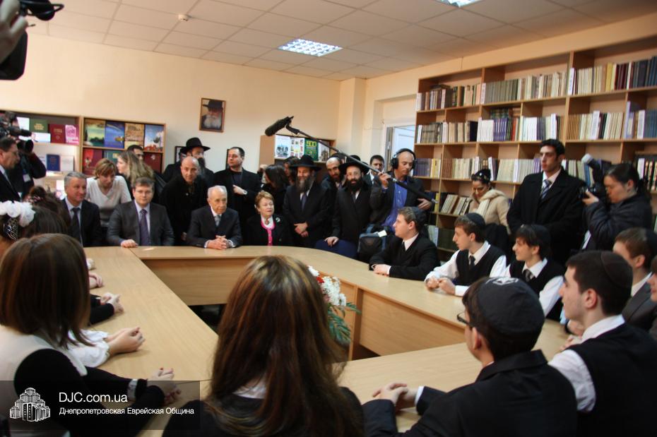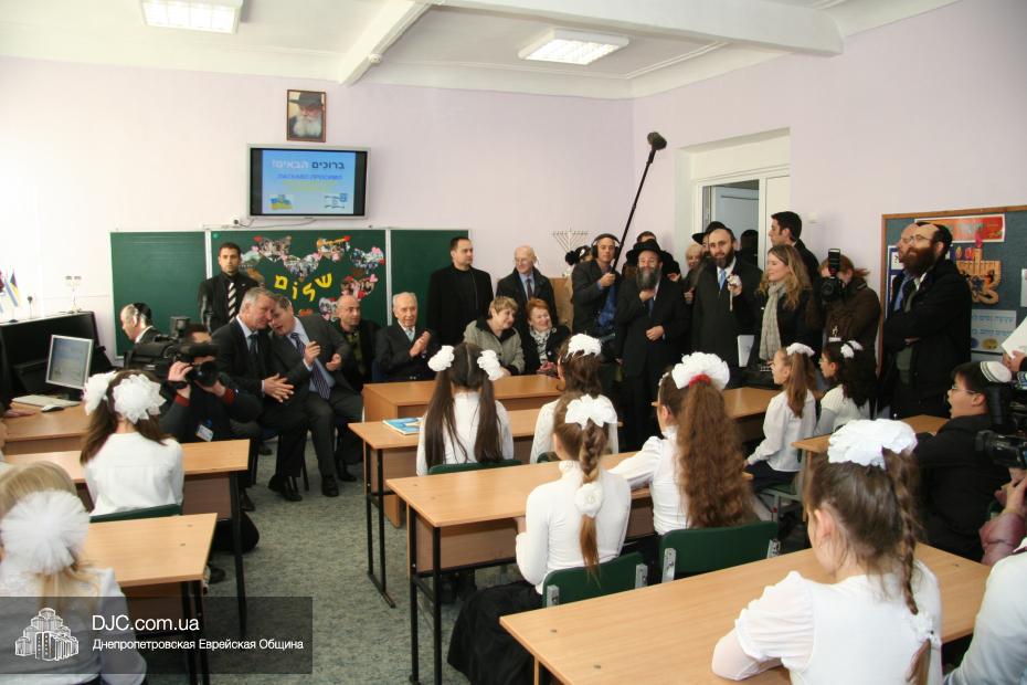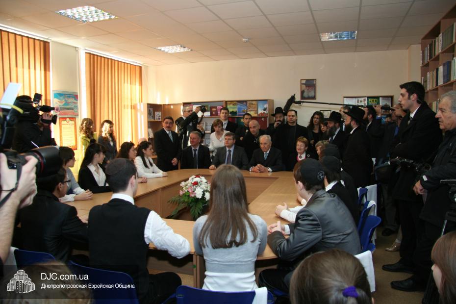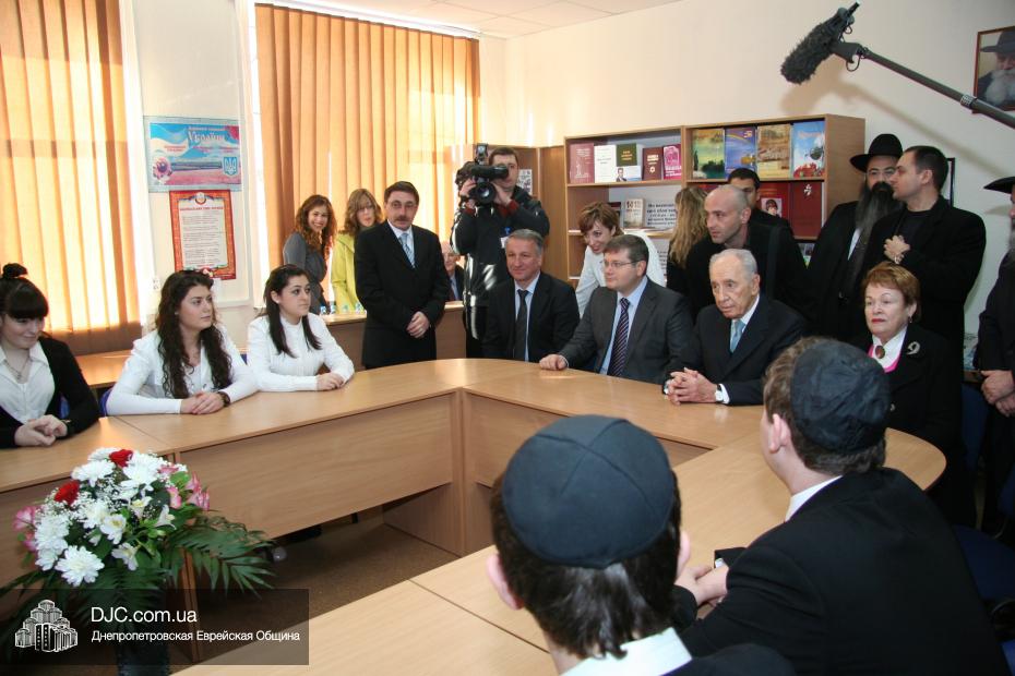 Еврейскую школу, крупнейшую в Европе, высокому гостю представили: председатель областной государственной администрации Александр Юрьевич Вилкул, мэр Днепропетровска Иван Иванович Куличенко, Главный раввин Днепропетровска и Днепропетровского региона Шмуэль Каминецкий и Софья Иосифовна Пинчук, которая опекает еврейские образовательные учреждения Днепропетровска от имени своего сына, патрона еврейского образования, Виктора Михайловича Пинчука и «Фонда Виктора Пинчука».