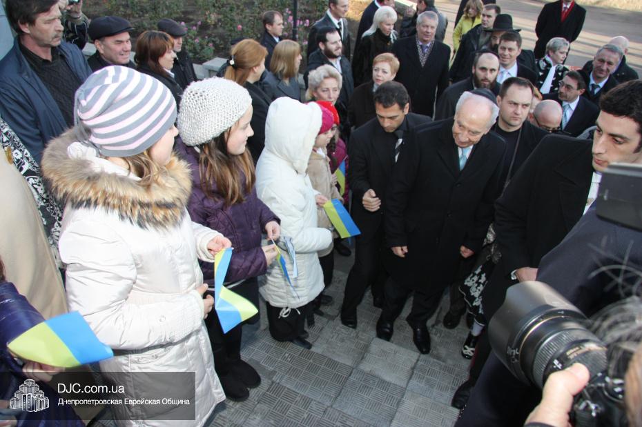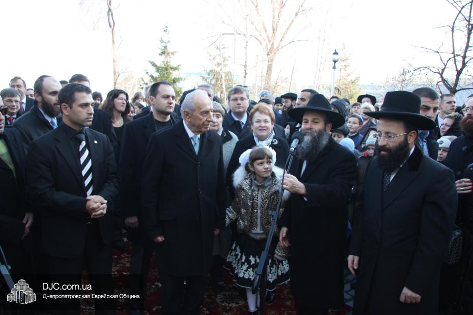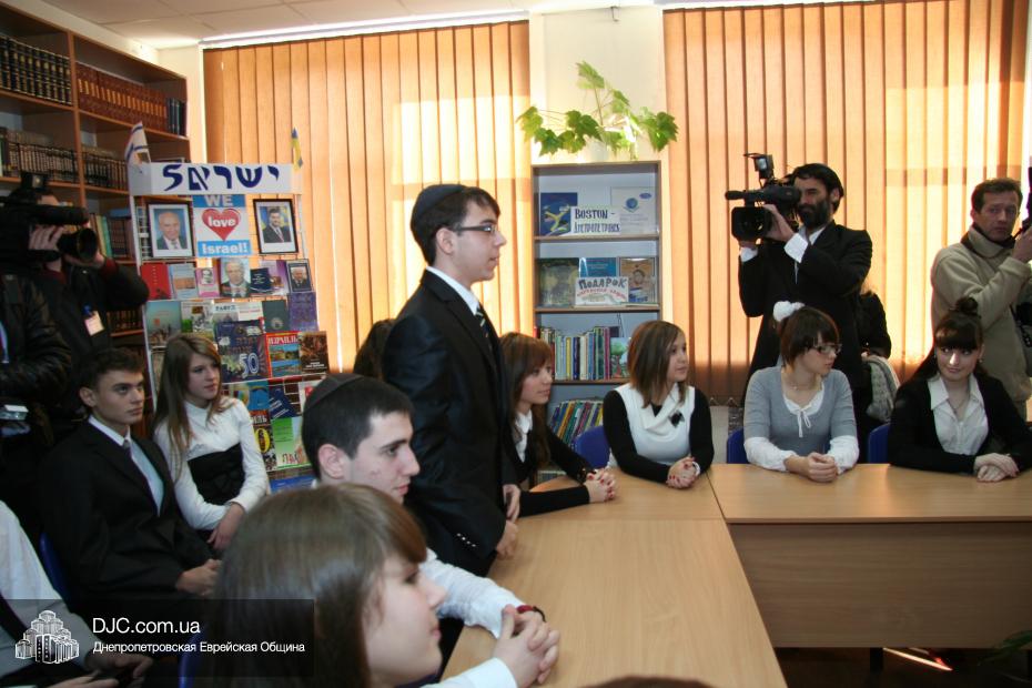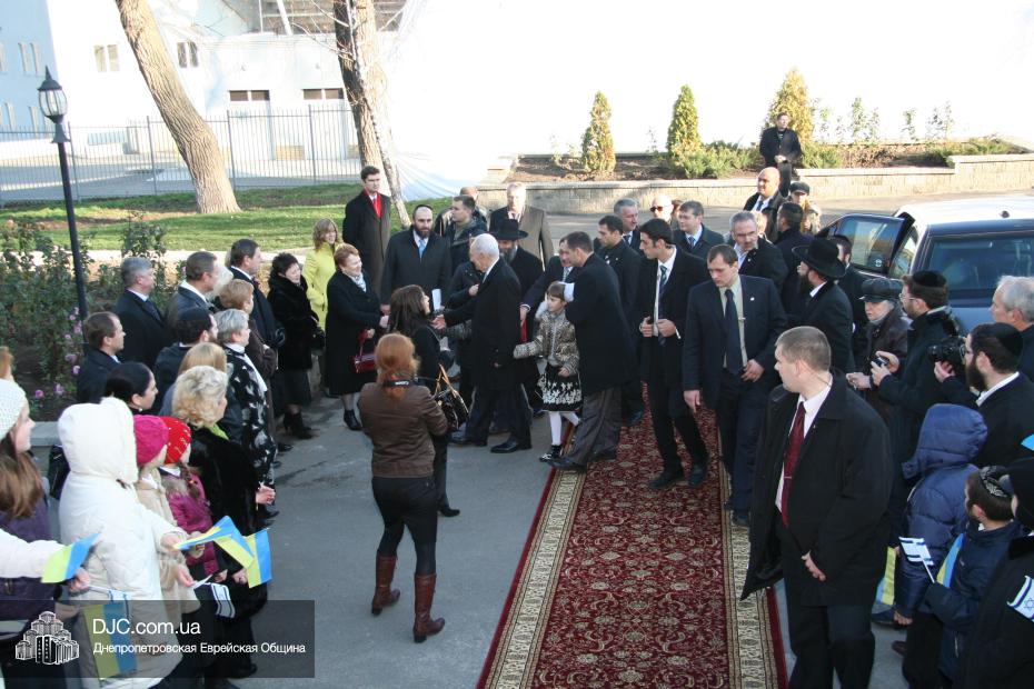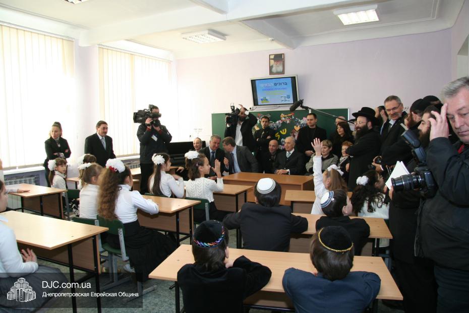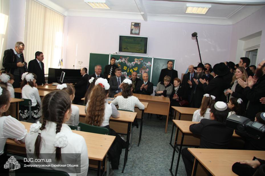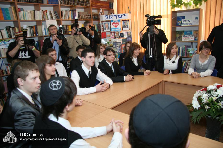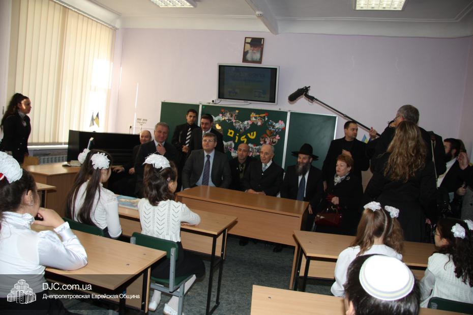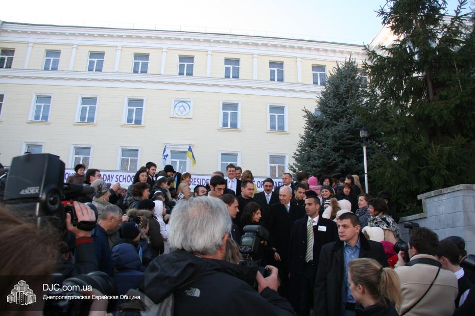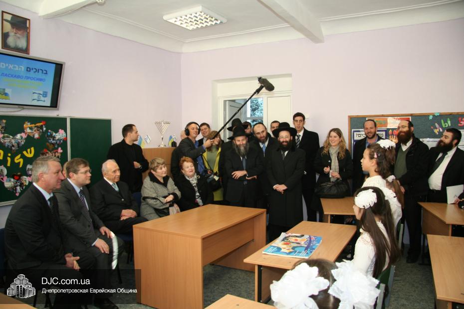 Еврейскую школу, крупнейшую в Европе, высокому гостю представили: председатель областной государственной администрации Александр Юрьевич Вилкул, мэр Днепропетровска Иван Иванович Куличенко, Главный раввин Днепропетровска и Днепропетровского региона Шмуэль Каминецкий и Софья Иосифовна Пинчук, которая опекает еврейские образовательные учреждения Днепропетровска от имени своего сына, патрона еврейского образования, Виктора Михайловича Пинчука и «Фонда Виктора Пинчука».