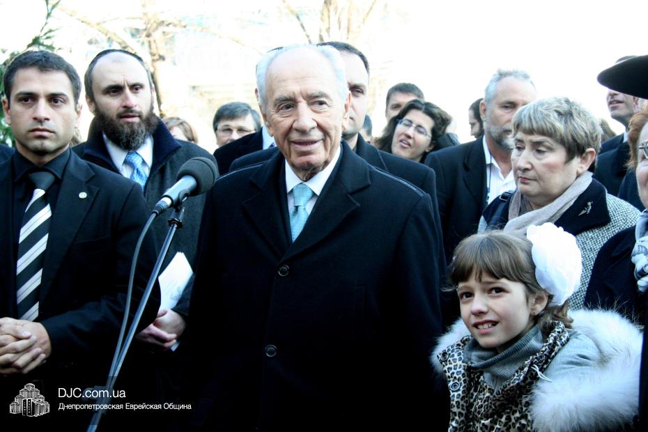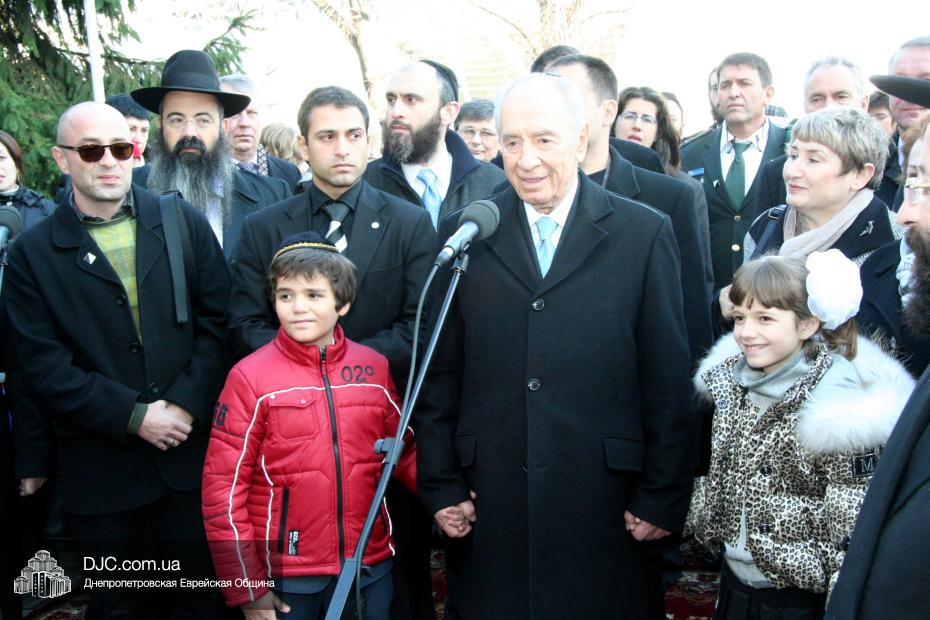 «Президент Израиля Шимон Перес, в рамках своего пребывания в Днепропетровске, посетил еврейскую школу Днепропетровска № 144 «Ор Авнер Хабад Любавич» им. Леви-Ицхака Шнеерсона, вместе с послом государства Израиль в Украине госпожой Зиной Калай-Клайтман и сопровождающими их лицами.