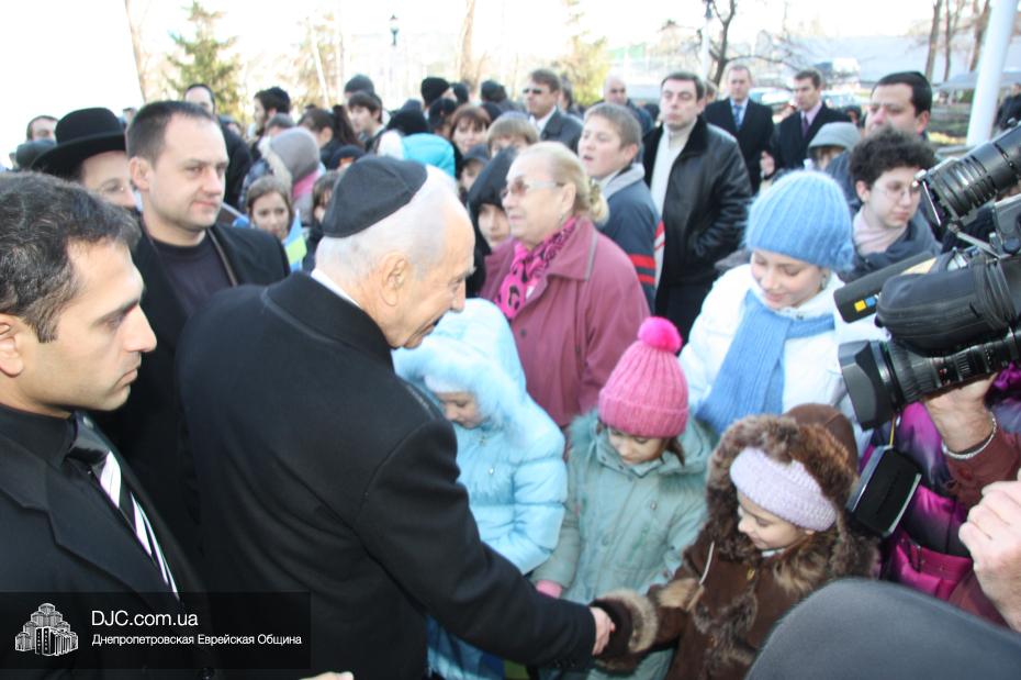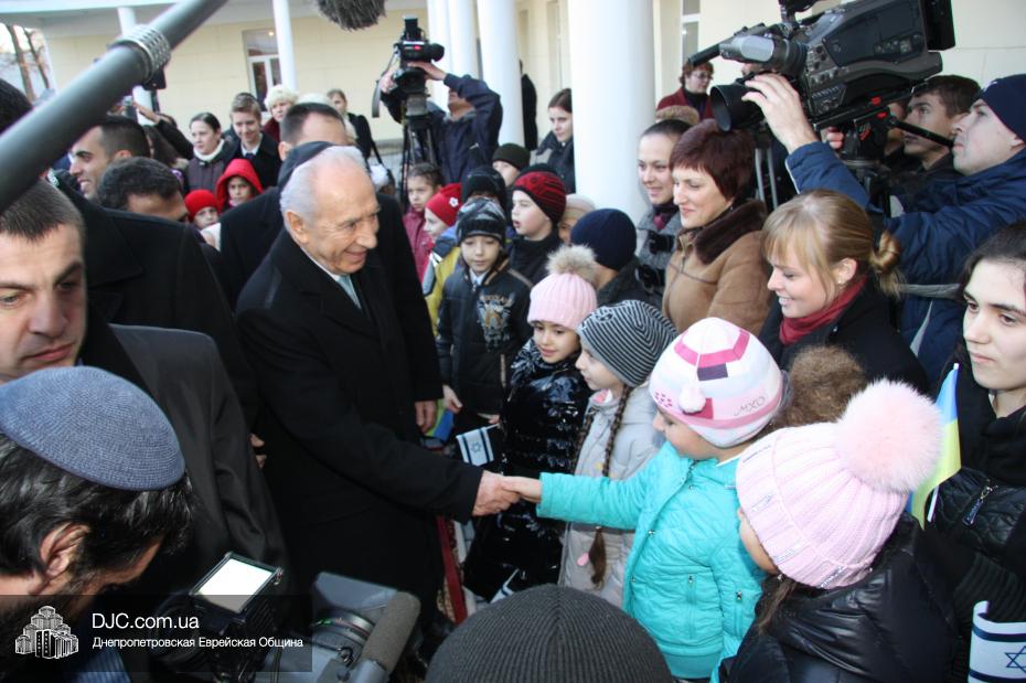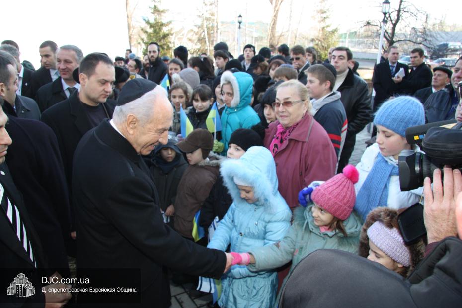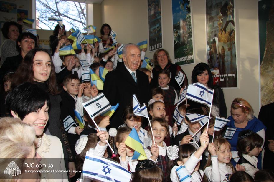 Шимон Перес общался с детьми очень охотно, явно не хотел с ними расставаться и уходить из еврейской школы, но необходимость отлета на Святую Землю, чтобы попасть в Иерусалим до наступления Шабата, очень ограничивала время общения. Впрочем, Шимон Перес пообещал, что в ближайшие годы обязательно посетит Днепропетровск для участия в открытии Центра «Менора», ну а всех детей он пригласил приехать в Израиль и познакомиться воочию с этой прекрасной страной».