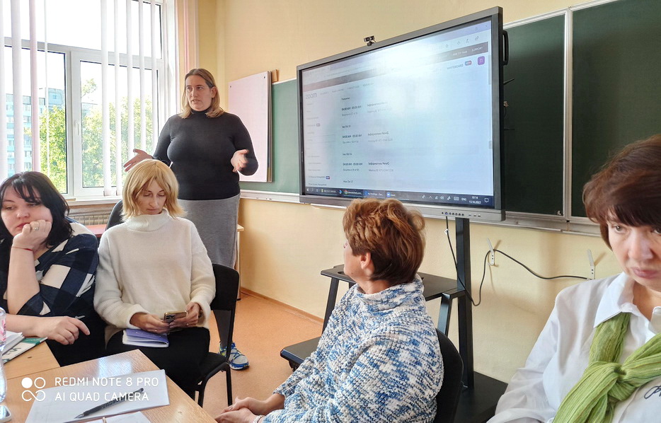 Много внимания было уделено платформе «Моя школа», которая дает возможность упростить организацию учебного процесса с помощью новейших технологий. К этой системе подключаются не только учителя, но и администрация школы, социальные педагоги, библиотекари или медицинские работники, а также дети и их родители. Мастер-класс, получивший название «Безліч корисних порад та "прихованих" можливостей… Дуже корисно та системно» о возможностях ведения электронного журнала, выставления оценок, домашнего задания и другой информации провела Татьяна Ивашкова, заместитель директора по учебно-воспитательной работе.