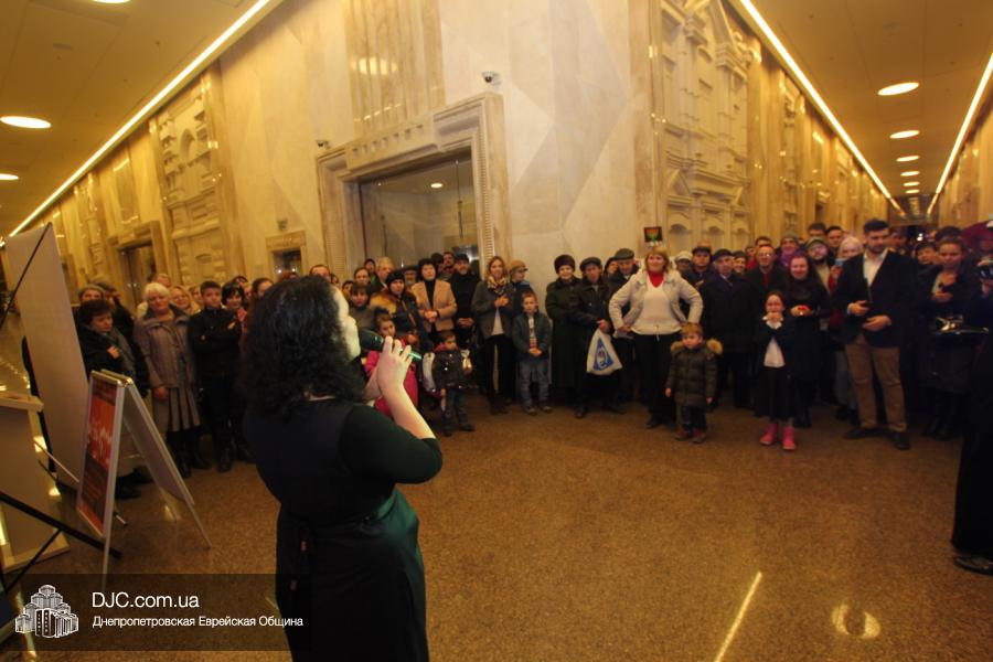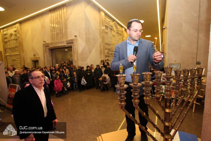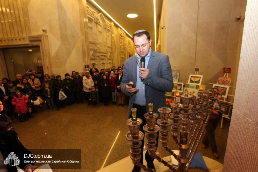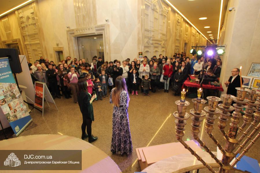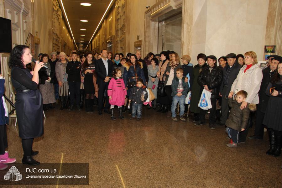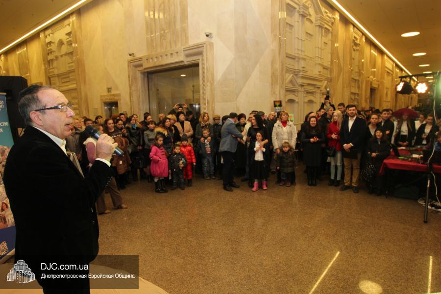 Предваряя начало церемонии зажжения, госпожа Натали Набитовски, глава днепропетровского филиала «Сохнут-Украина», тепло поздравила всех собравшихся в Галерее центра с праздником света, огней и радости. «Я хочу поздравить вас со светлым и красивым праздником – праздником Ханука, который является для нас праздником нашей духовной независимости, и я верю, что рано или поздно все евреи соберутся на Святой Земле», – обратилась госпожа Набитовски ко всем, пришедшим в этот день в «Менору», дабы увидеть чудесное зажжение ханукального светильника во второй день Хануки.