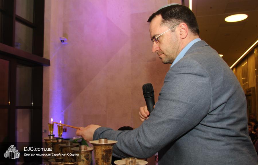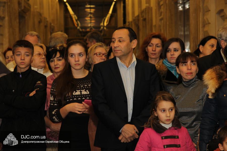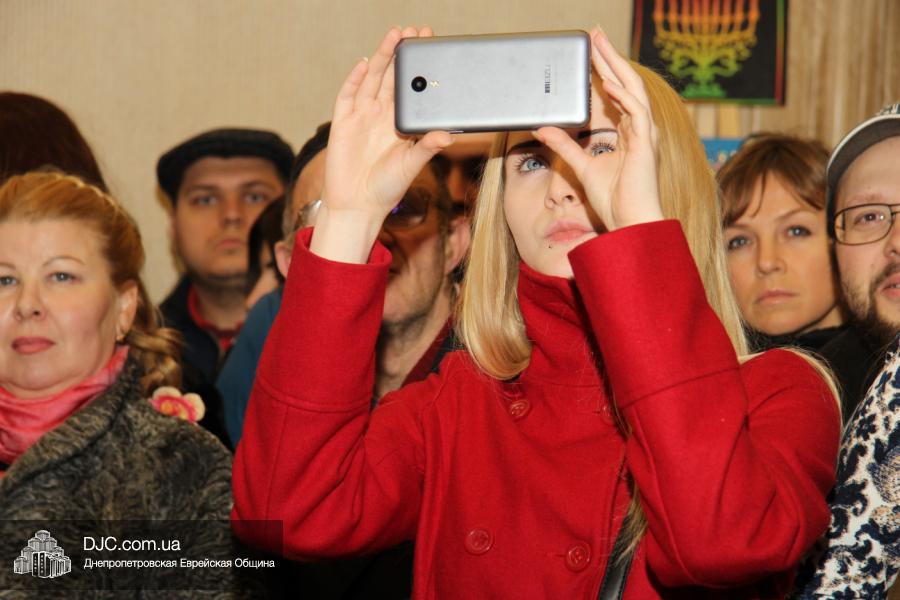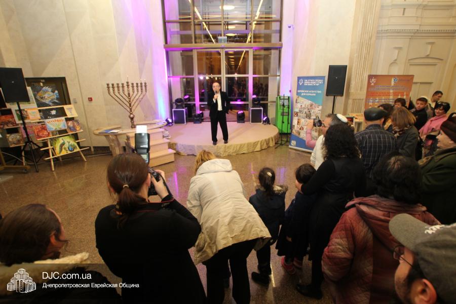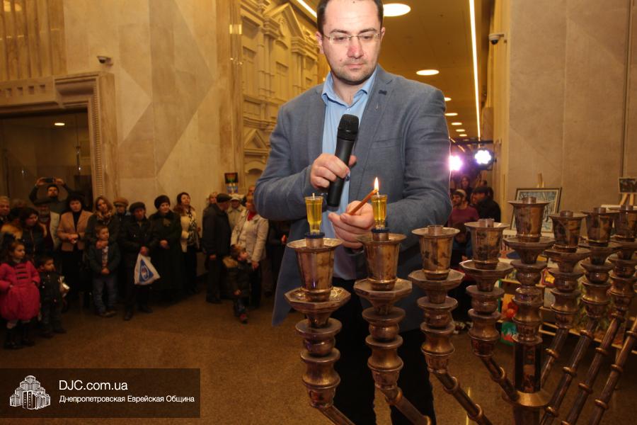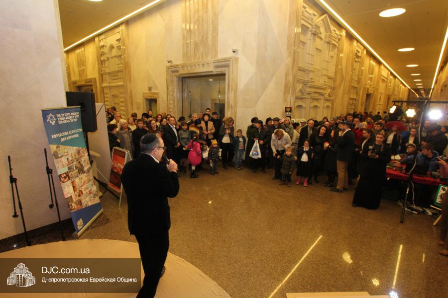 Предваряя начало церемонии зажжения, госпожа Натали Набитовски, глава днепропетровского филиала «Сохнут-Украина», тепло поздравила всех собравшихся в Галерее центра с праздником света, огней и радости. «Я хочу поздравить вас со светлым и красивым праздником – праздником Ханука, который является для нас праздником нашей духовной независимости, и я верю, что рано или поздно все евреи соберутся на Святой Земле», – обратилась госпожа Набитовски ко всем, пришедшим в этот день в «Менору», дабы увидеть чудесное зажжение ханукального светильника во второй день Хануки.