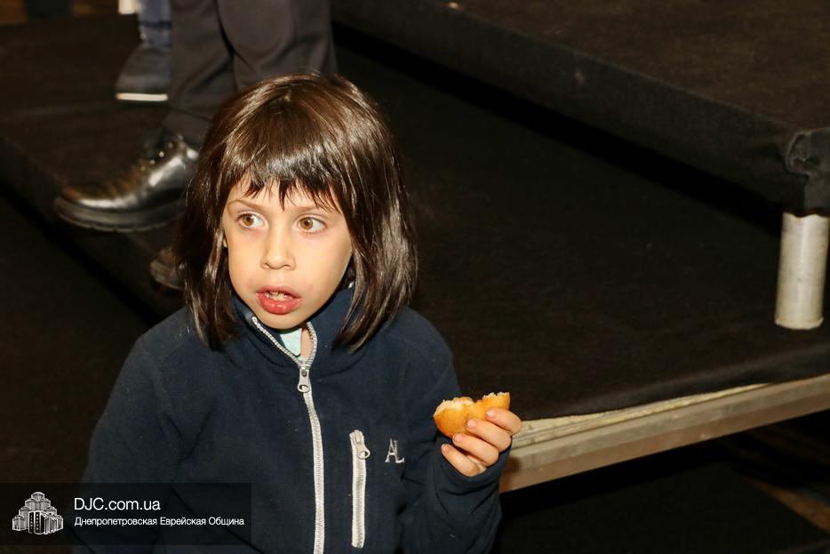 Далее, по традиции, прошел розыгрыш трех денежных призов в статусе «хануке гелт», перед публикой выступил ансамбль «А штикл мазл» и все смогли угоститься ханукальными пончиками.