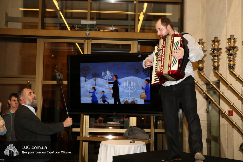 Главной звездой музыкальной части ханукального вечера в Галерее «Менора» стал аккордеонист-виртуоз Николай Шепель, который исполнил, как популярные еврейские мелодии, так и хиты, и шлягеры прошлых лет. Выступление Николая Шепеля весьма впечатлило публику, особенно младшее поколение.