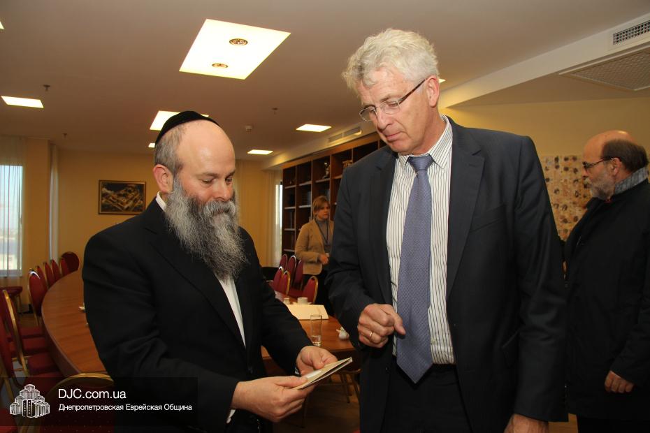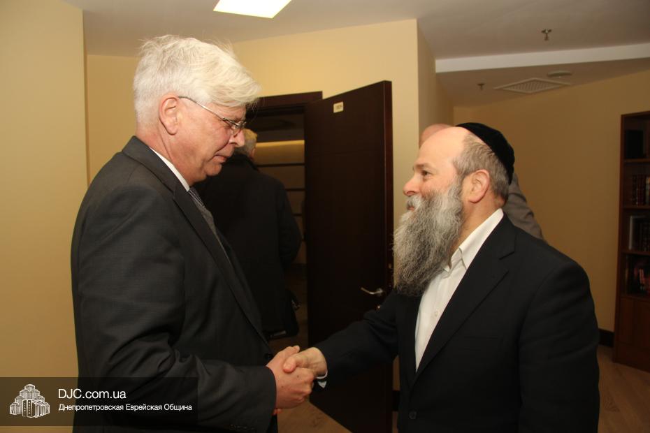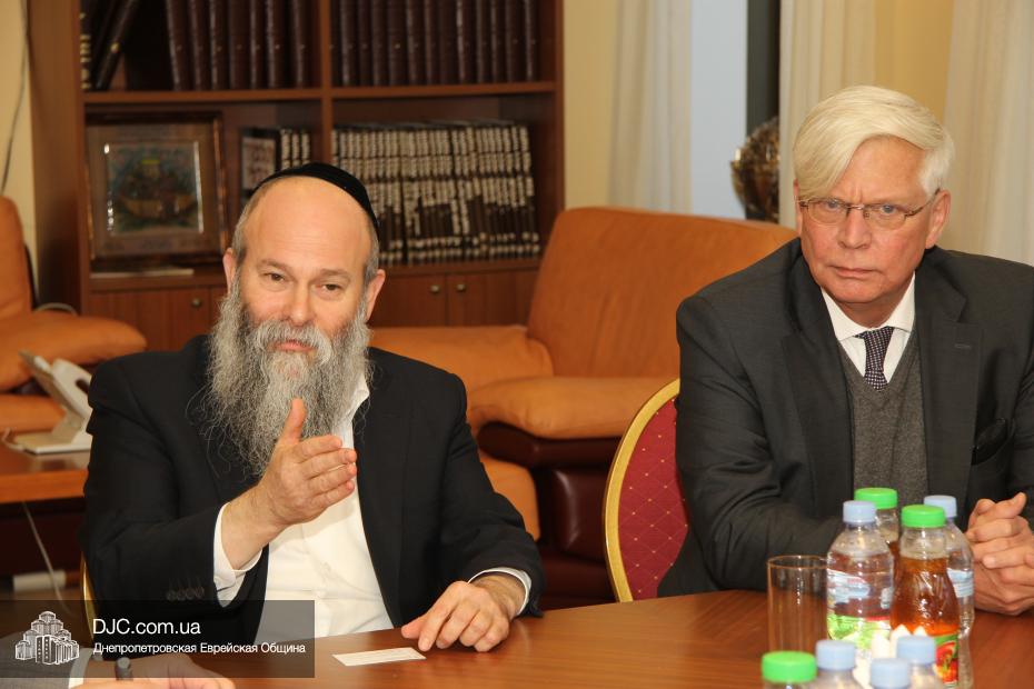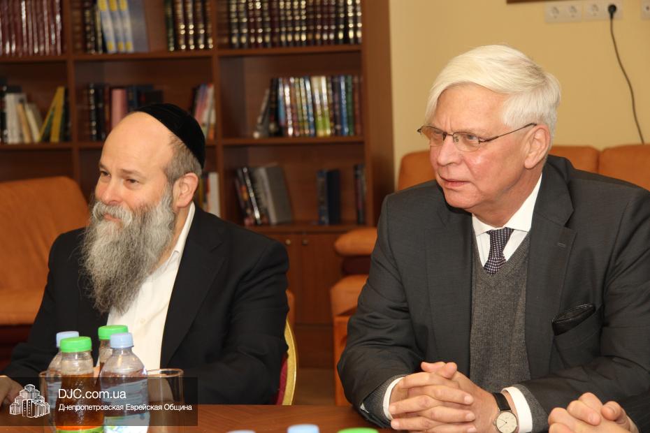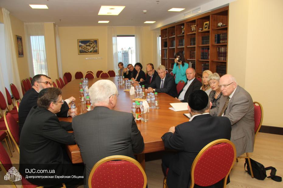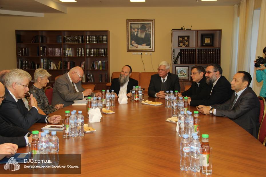 Представительная делегация депутатов немецкого Бундестага, в рамках своего визита в Днепропетровск, посвященного празднованию 25-летия воссоединения Германии, посетила еврейскую общину и провела встречу с Главным раввином Днепропетровска и региона Шмуэлем Каминецким.