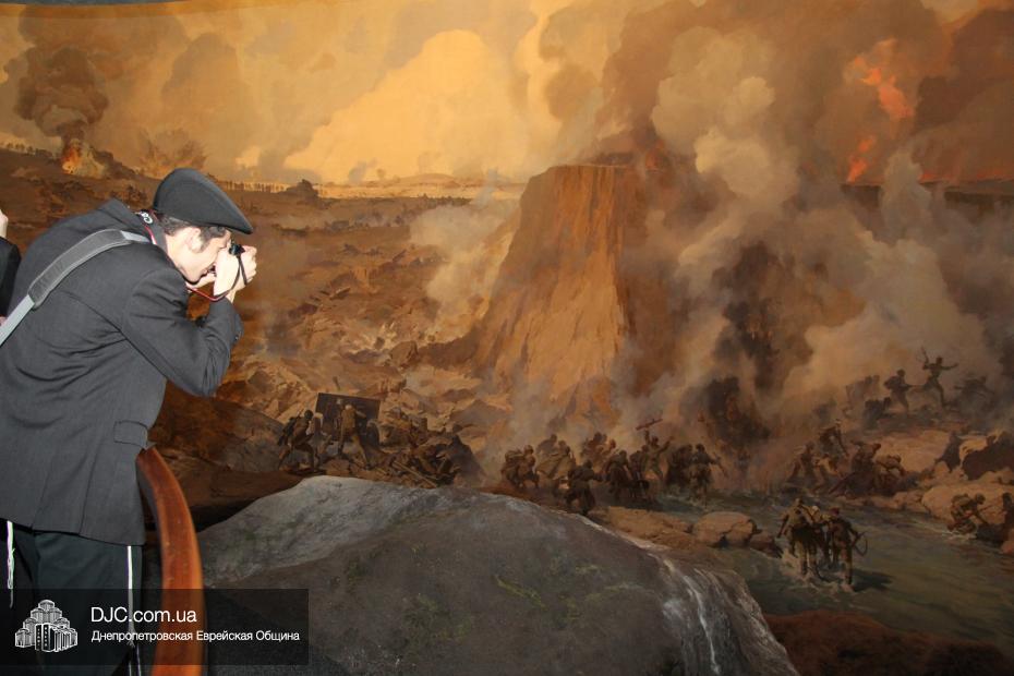Сначала экскурсовод Исторического музея Днепра рассказала американским студентам о военной операции 1943 года, о том, как планировалось и осуществлялось форсирование Днепра частями Красной Армии, а затем ребята осмотрели диораму, повествующую об этом важном эпизоде Второй Мировой.