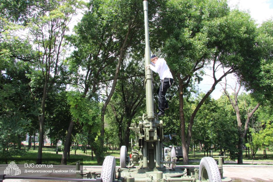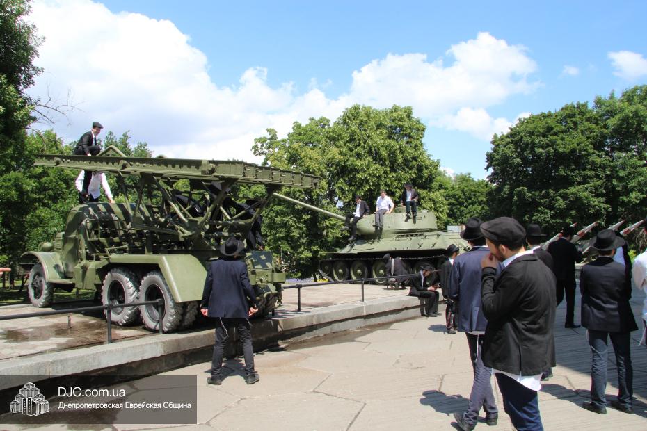 После экскурсии в диораму студенты иешивы на открытой площадке познакомились с советской военной техникой того периода – легендарным танком Т-34, ракетной установкой М-31 «Катюша» и зенитными орудиями.