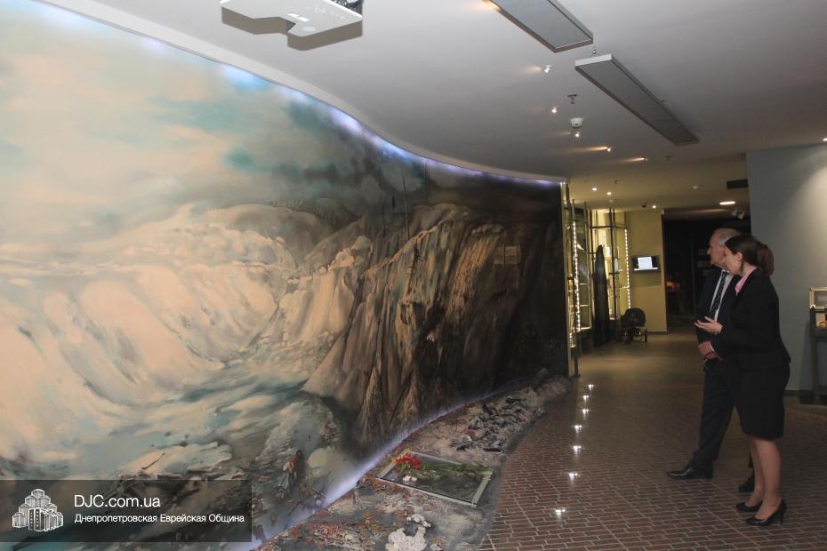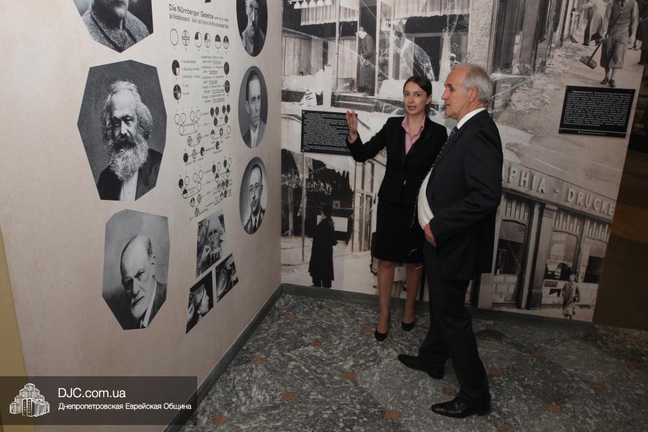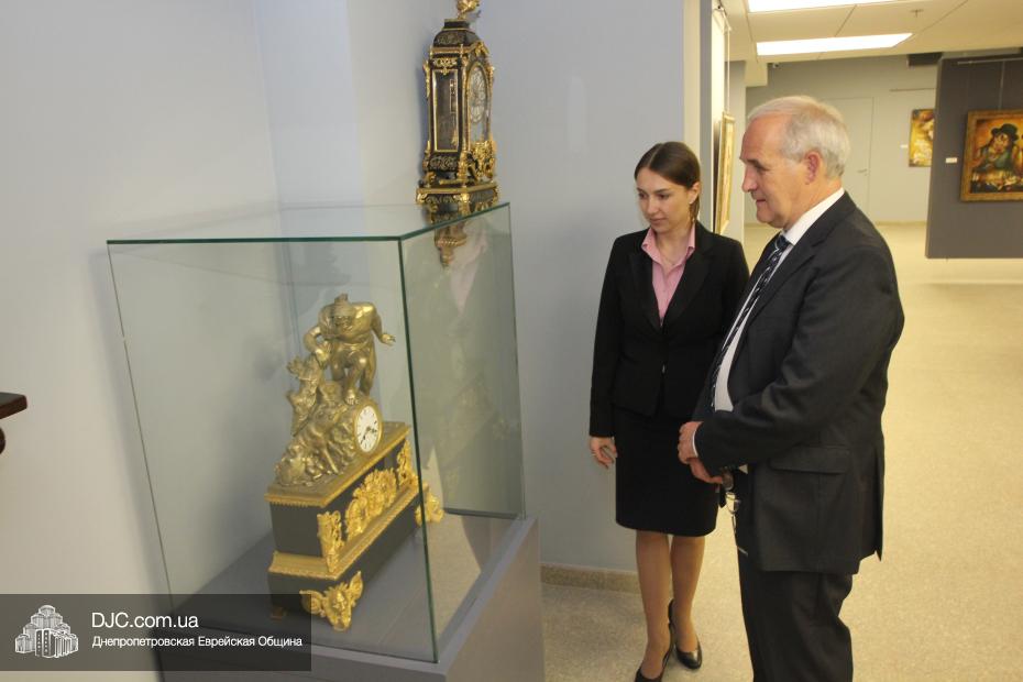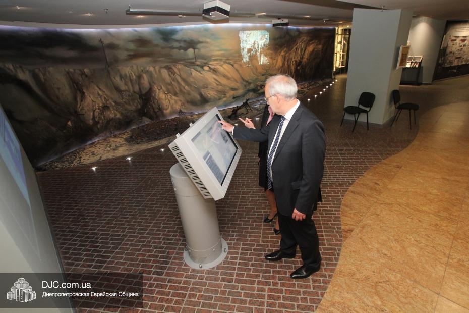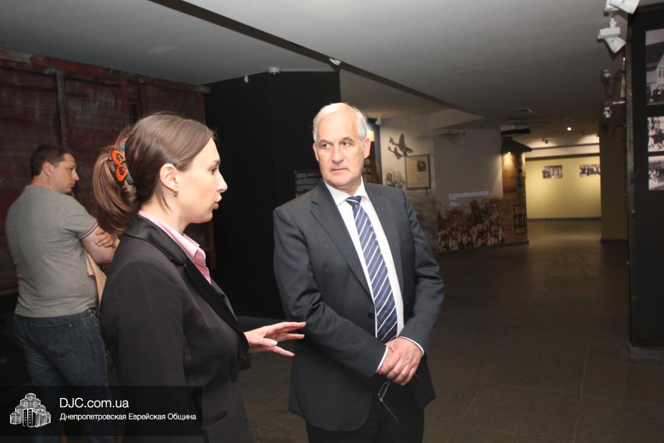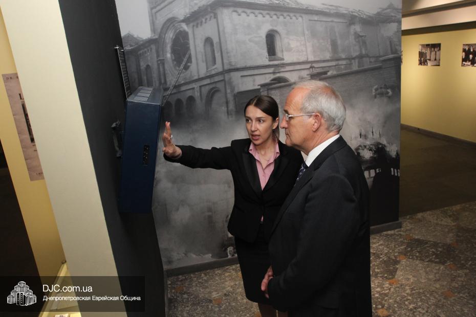 Доктор Детлеф Вольтер начал свой визит в общину с посещения музея «Память еврейского народа и Холокост в Украине», где  экскурсию для него провела научный сотрудник музея и заместитель руководителя научного отдела УИИХ «Ткума» Александра Леонова. Она ознакомила почетного гостя с экспозициями, представленными в трех музейных залах, в деталях рассказала ему об основных этапах еврейской истории, о некоторых еврейских праздниках, заповедях, обычаях, предметах иудаики, а также продемонстрировала Генеральному консулу мультимедийные возможности музея. Генеральный консул также был впечатлен общей атмосферой, царящей в музее.