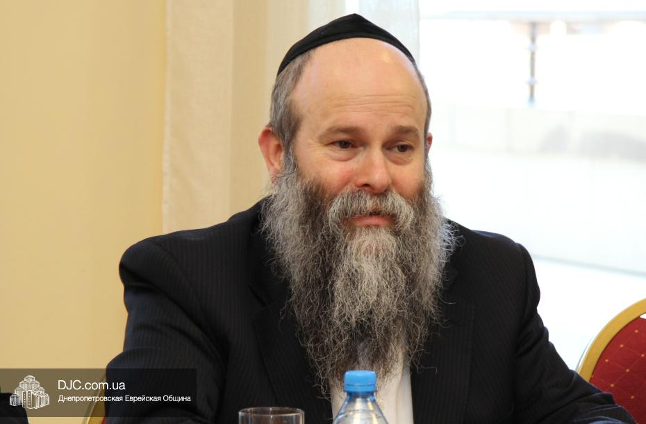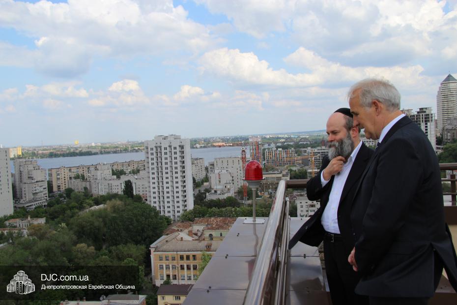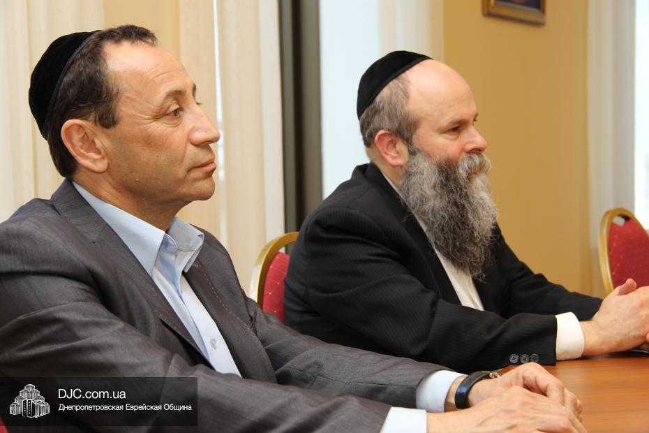 В завершение визита в общину состоялась краткая встреча доктора Детлефа Вольтера с Главным раввином Днепропетровска и региона Шмуэлем Каминецким, который рассказал гостю об истории и сегодняшнем дне еврейской общины, о непростом пути еврейского возрождения в Днепропетровске.