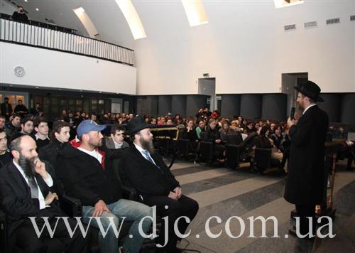 Главный раввин Днепропетровска и Днепропетровского региона Шмуэль Каминецкий представил гостей, отметив тот неподдельный интерес, который проявляют во всем мире к успехам еврейского возрождения в Днепропетровске. Главный раввин России Берл Лазар в своем обращении к участникам встречи подчеркнул, что он очень рад, что так много молодых людей принимают участие в жизни общины, посещают синагогу и исполняют заповеди. Он подробно остановился на необходимости сохранять еврейскую идентичность в любом уголке мире и поддерживать друг друга, приведя в пример Эфраима и Менаше. В заключении он поделился своим впечатлением от строительства крупнейшего в мире Центра «Менора».