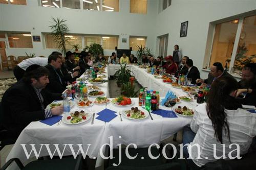 В торжественной трапезе, посвященной визиту в Днепропетровск столь представительной международной делегации, приняли участие члены Попечительского совета Натан Золотаревский, Эдуард Жак, Борис Гендельман, Игаль Роговой, Председатель совета Федерации еврейских общин Украины р. Меир Стамблер, вице-президент Фонда «Шиурей Тора» Дан Макогон и директор Международной детской организации «Цивос Гашем» в СНГ раввин Иосиф Глик. Гости с интересом узнали о программах и проектах Днепропетровской общины и выразили желание активно участвовать в их реализации.