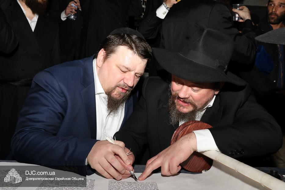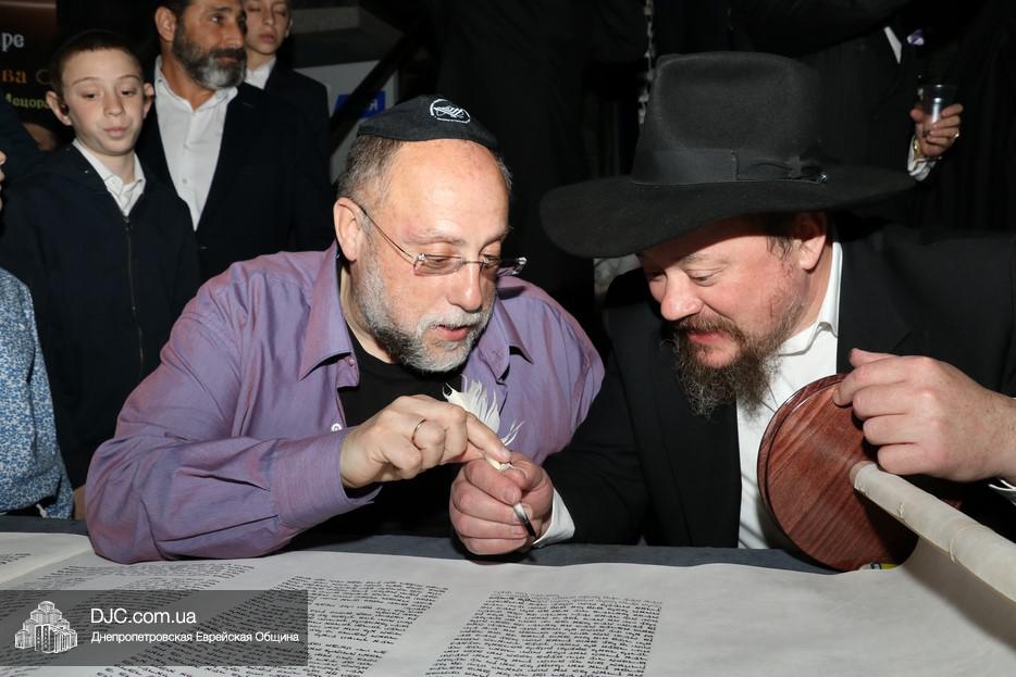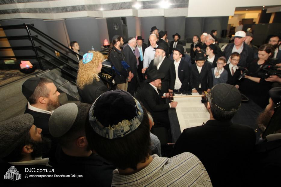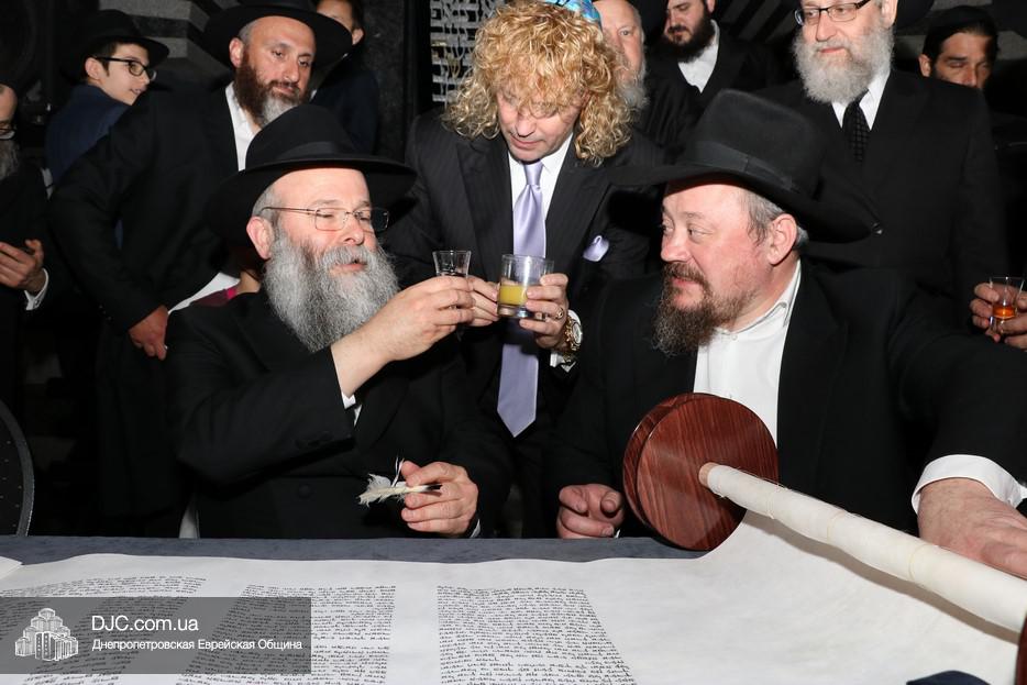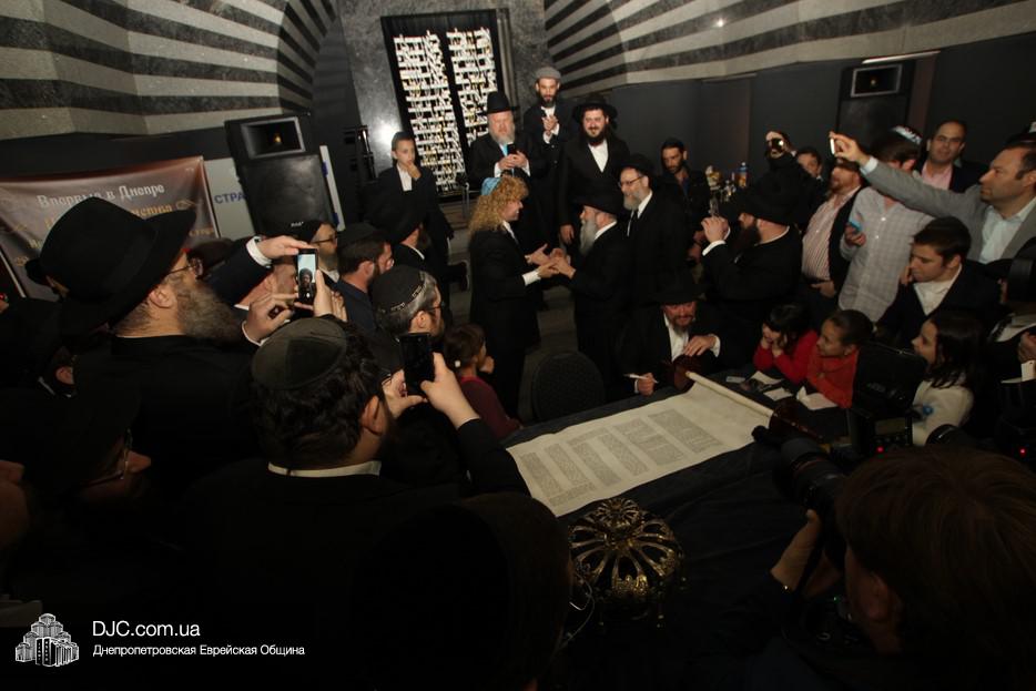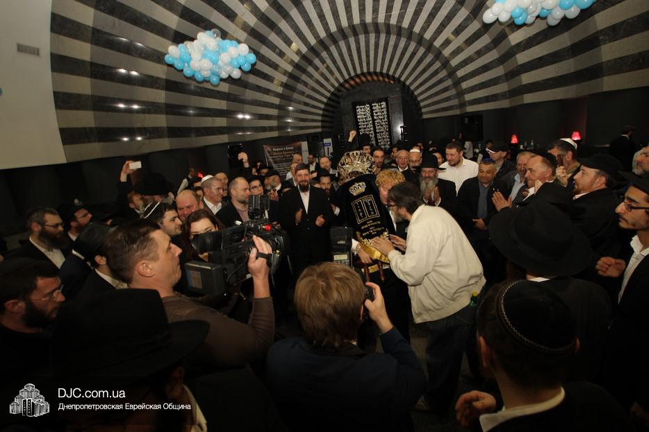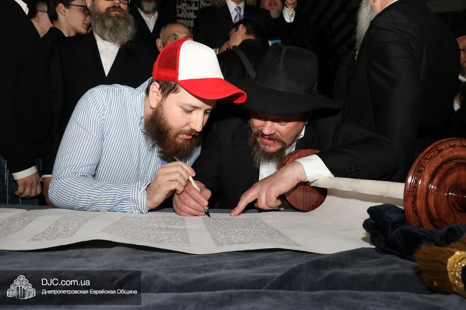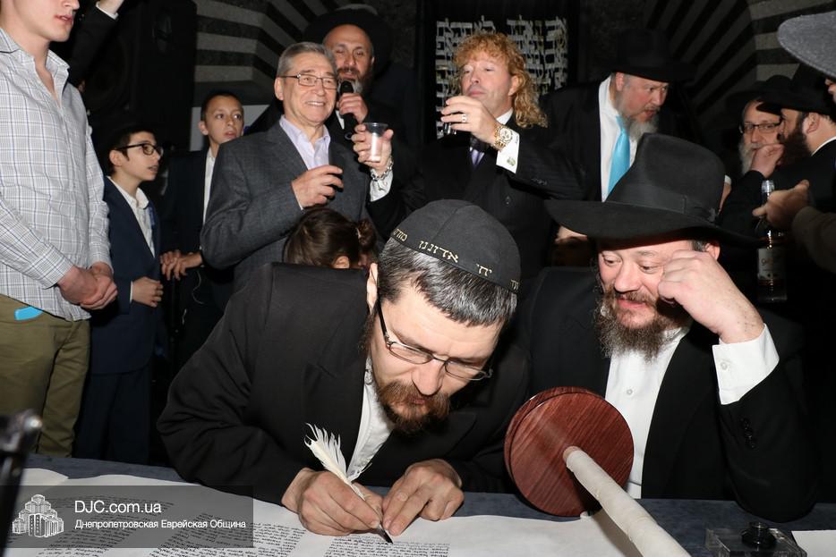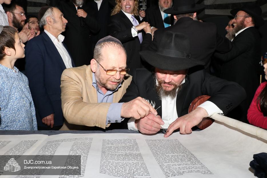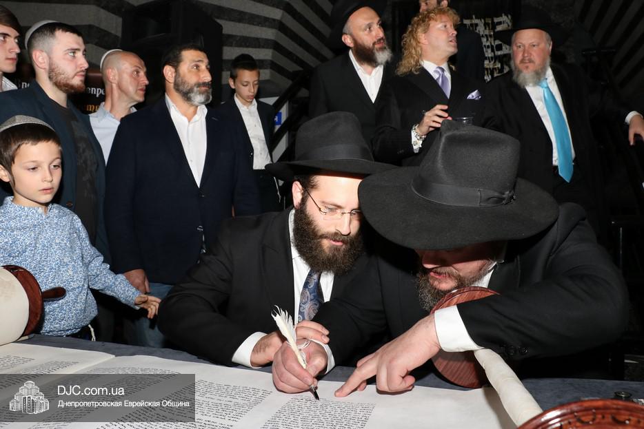 Церемония сопровождалась веселыми песнями и танцами и проходила в атмосфере всеобщего воодушевления. Последнюю букву в Свиток вписал сам Леонардо Фаркас, и, как разъяснил Главный раввин Днепра и региона Шмуэль Каминецкий, в этот момент в него вошла духовная энергия святости, добавившая много духовного света в наш мир.