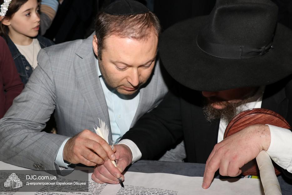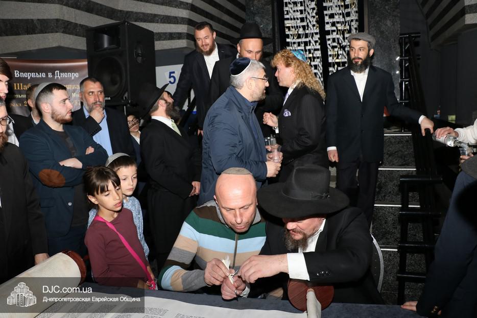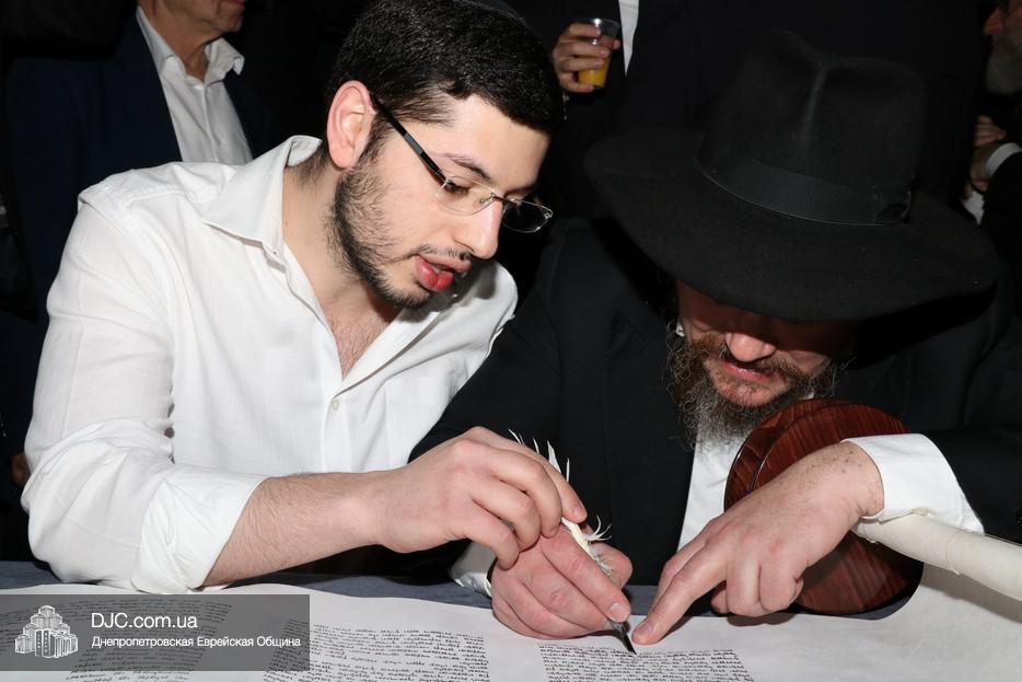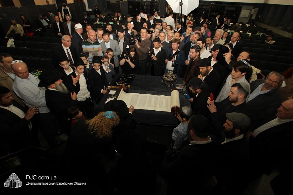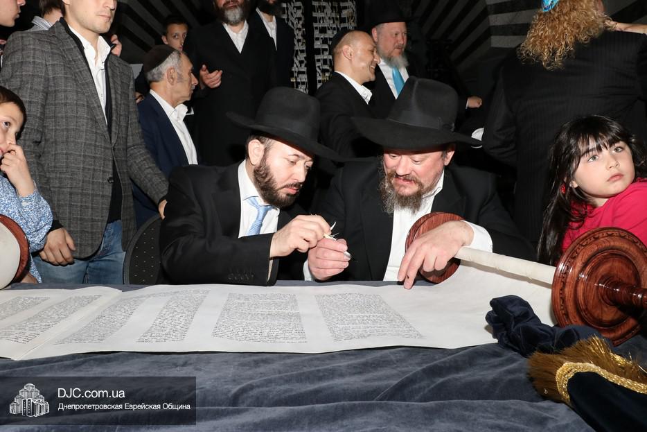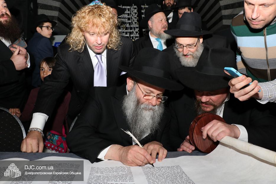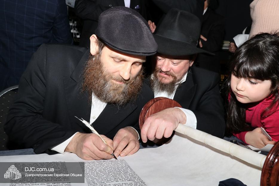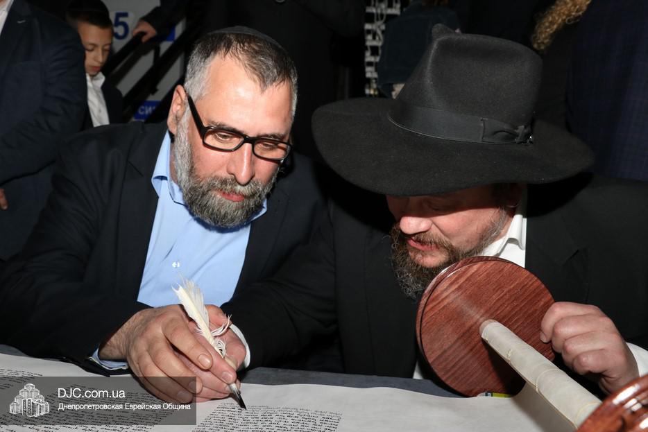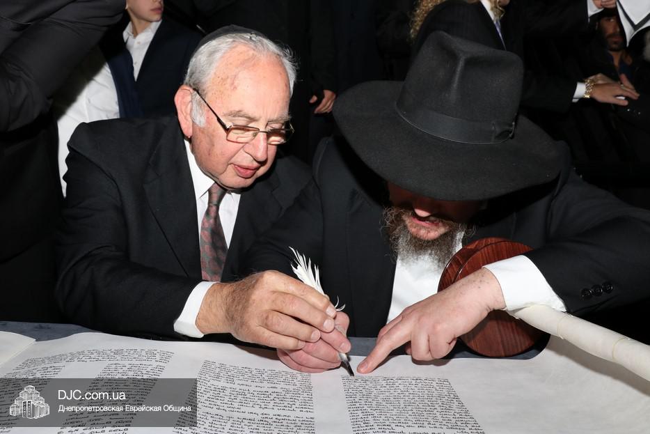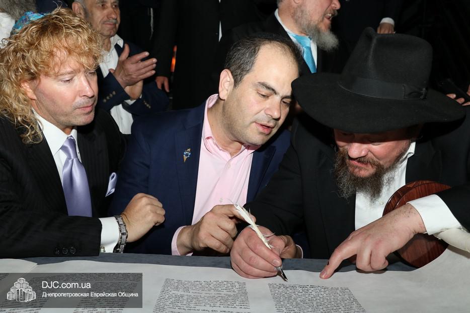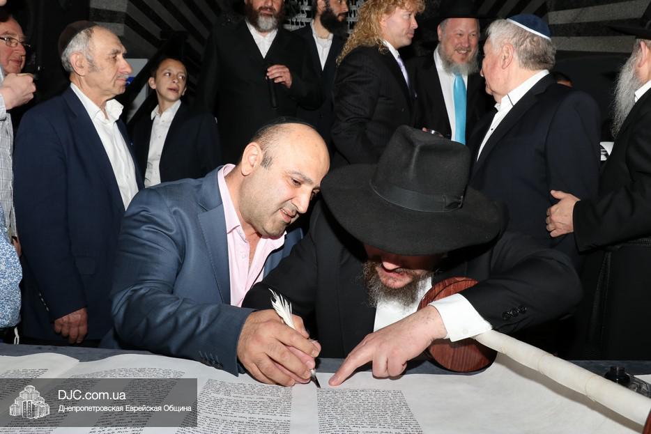 Церемония сопровождалась веселыми песнями и танцами и проходила в атмосфере всеобщего воодушевления. Последнюю букву в Свиток вписал сам Леонардо Фаркас, и, как разъяснил Главный раввин Днепра и региона Шмуэль Каминецкий, в этот момент в него вошла духовная энергия святости, добавившая много духовного света в наш мир.