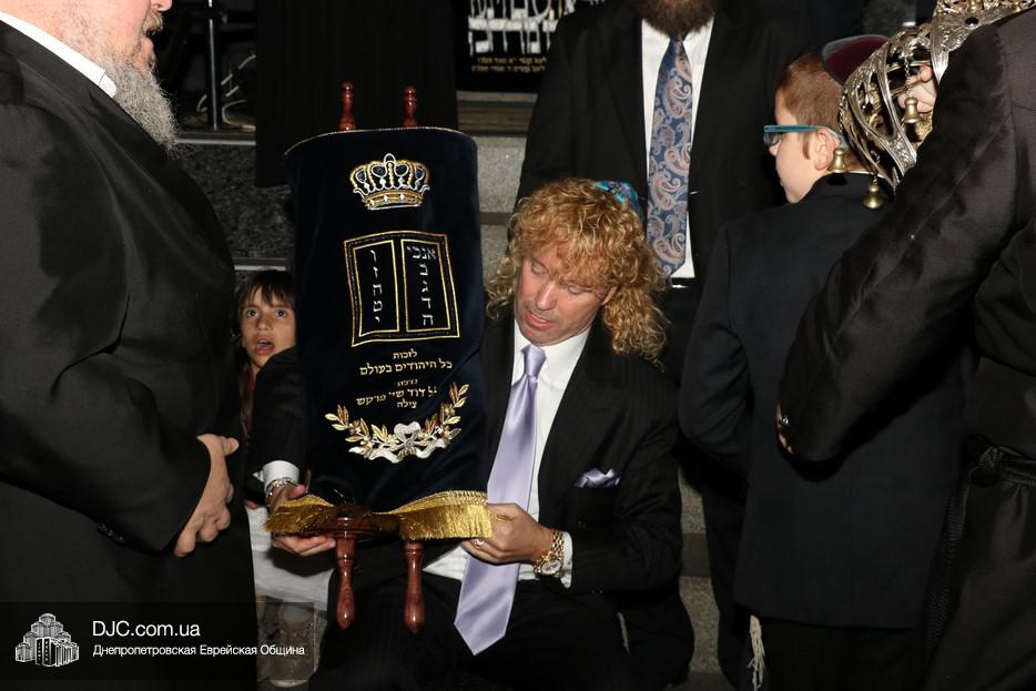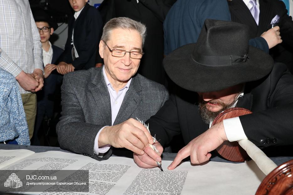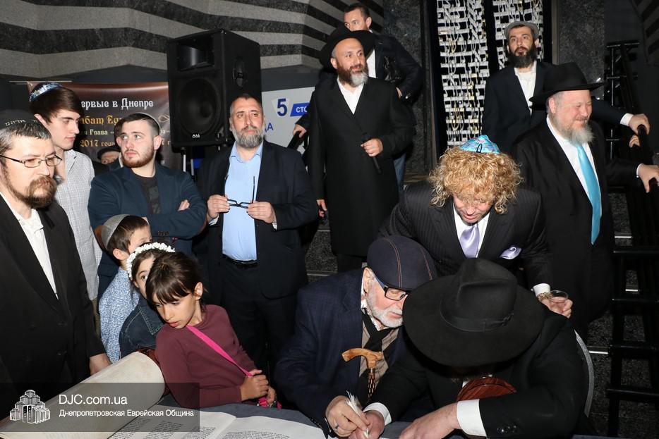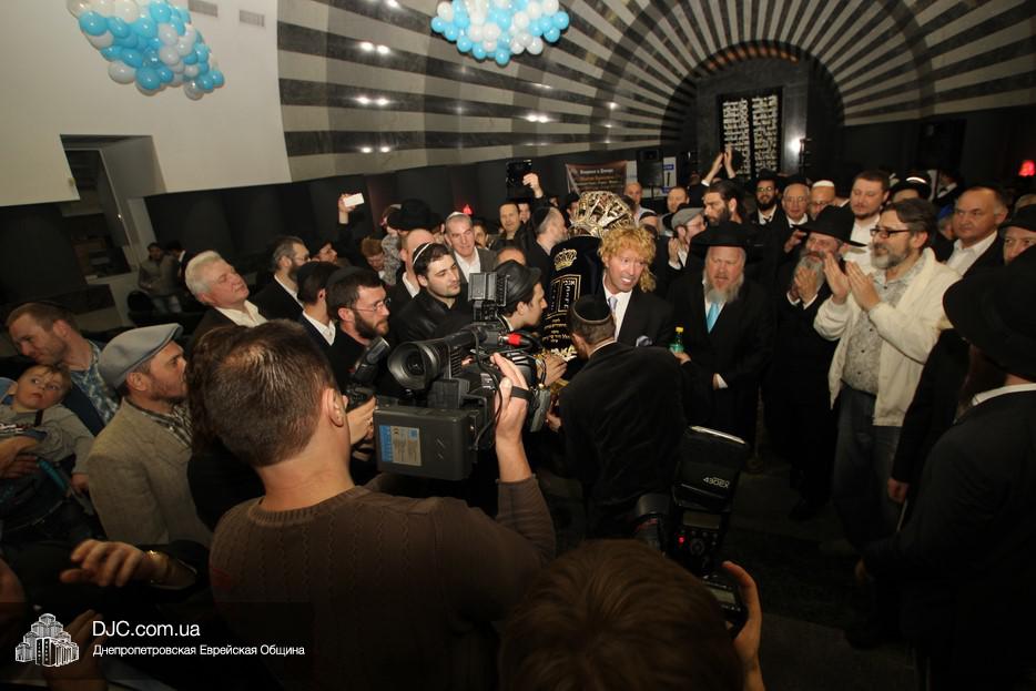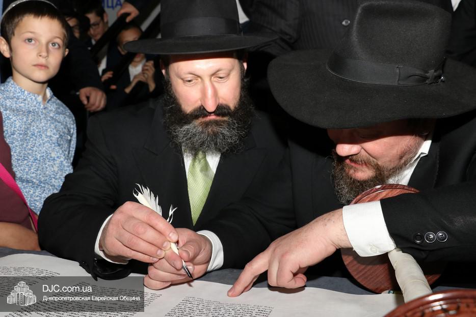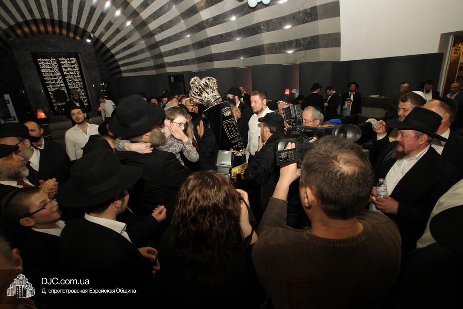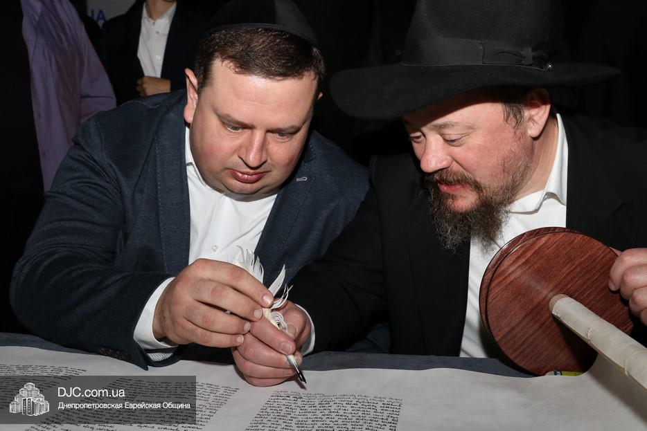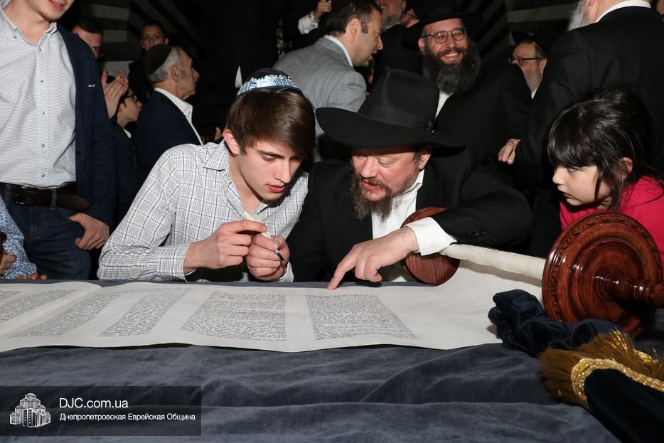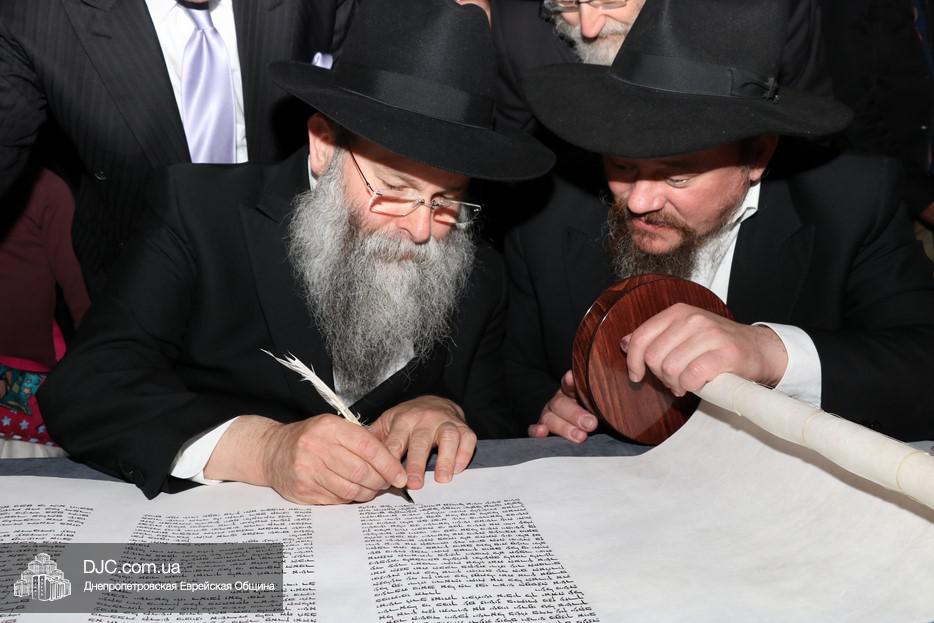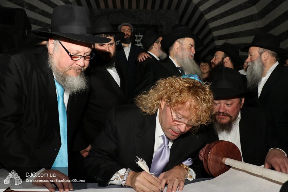 Церемония сопровождалась веселыми песнями и танцами и проходила в атмосфере всеобщего воодушевления. Последнюю букву в Свиток вписал сам Леонардо Фаркас, и, как разъяснил Главный раввин Днепра и региона Шмуэль Каминецкий, в этот момент в него вошла духовная энергия святости, добавившая много духовного света в наш мир.