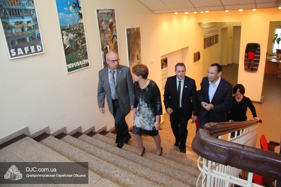 Состоялась встреча израильских дипломатов с Главным раввином Днепропетровска и Днепропетровского региона Шмуэлем Каминецким, на которой обсуждались актуальные вопросы еврейского возрождения и перспективные направления укрепления связей евреев диаспоры с государством Израиль. Большое впечатление на гостей произвел крупнейший в мире еврейский центр «Менора» и размах еврейского возрождения в Днепропетровске.