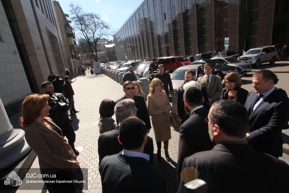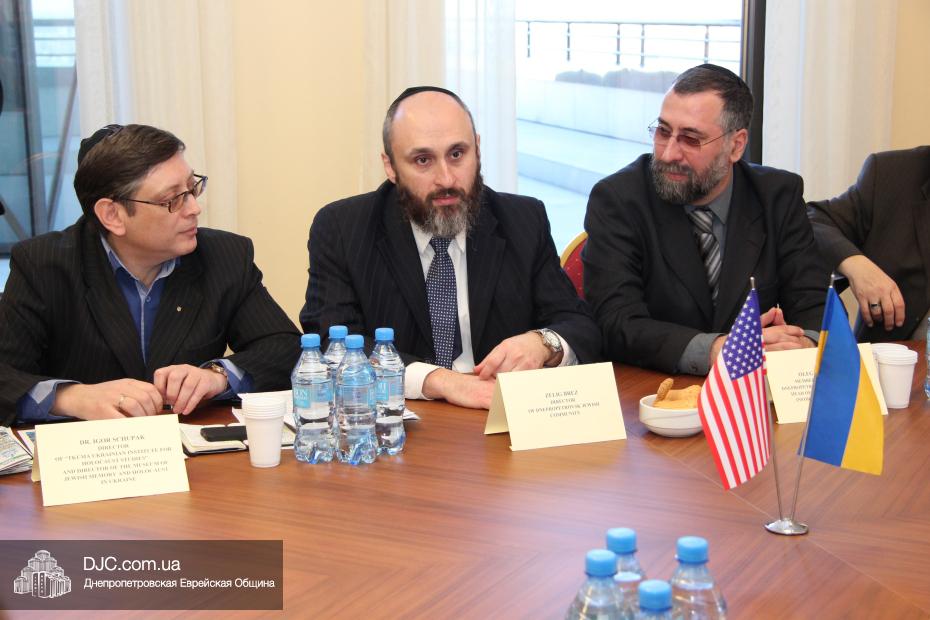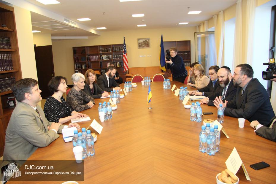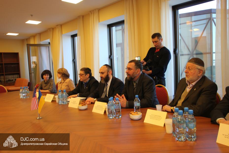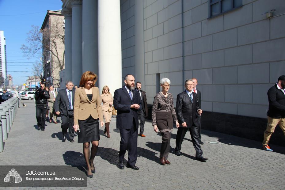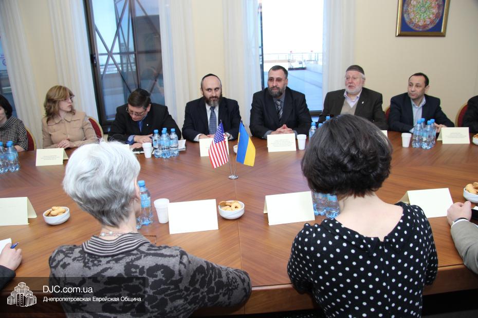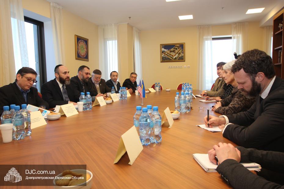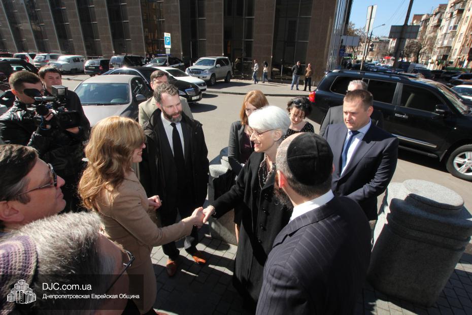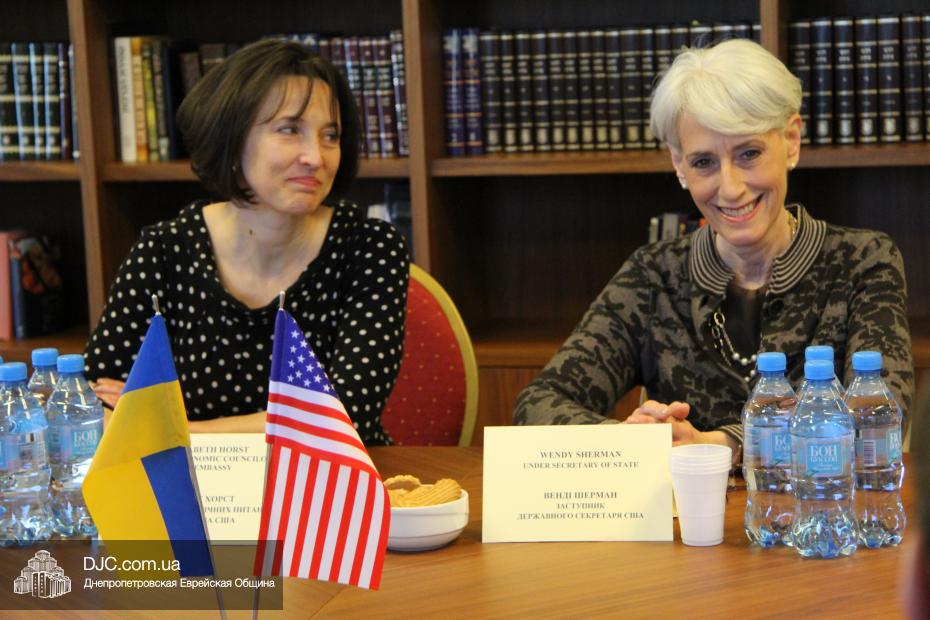 Руководители еврейской общины Днепропетровска осудили акт агрессии против Украины со стороны Российской Федерации и аннексию ее территории и призвали Соединенные Штаты приложить все возможные усилия для поддержки стремления украинского народа жить в единой, целостной и свободной стране, которая твердо выбрала свой цивилизационный вектор развития. Госпожа Венди Шерман сказала, что ей было очень важно услышать позицию украинских евреев непосредственно от лидеров общины, и что она считает, что эта правда должна быть известна всем в мире, она заявила, что Соединенные Штаты поддерживали и поддерживают стремление всех народов к демократии и свободе, и что Украине также будет оказана вся возможная помощь. Она обещала донести позицию еврейской общины Днепропетровска до Президента США Барака Обамы и правительства Соединенных Штатов.