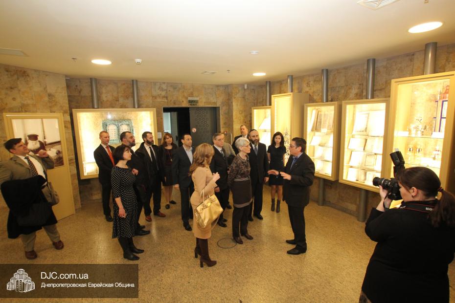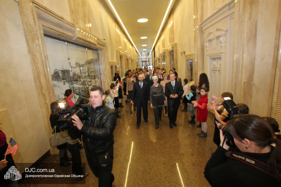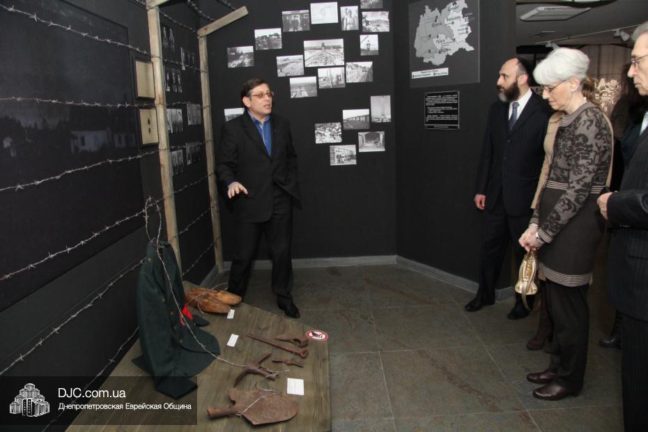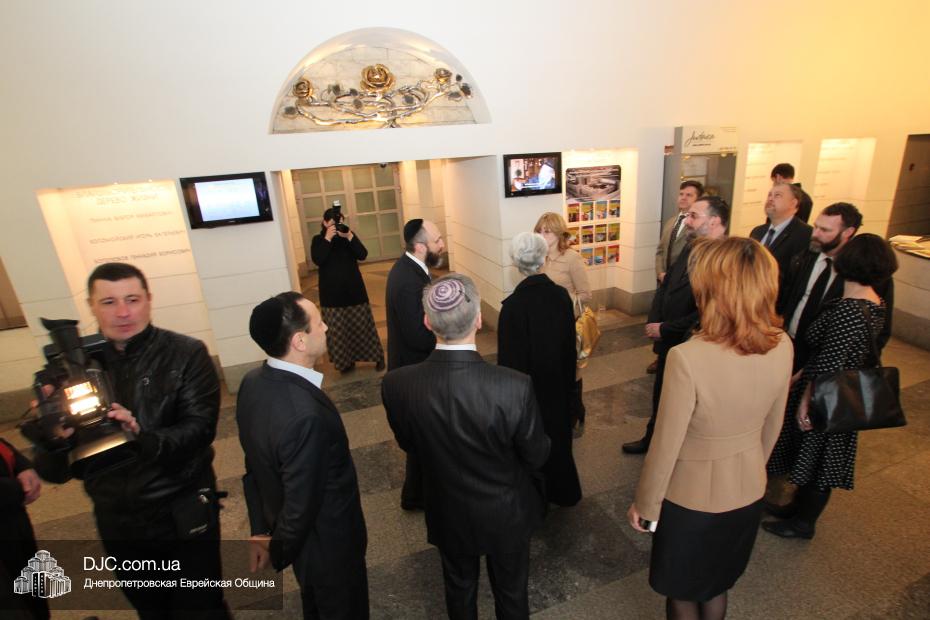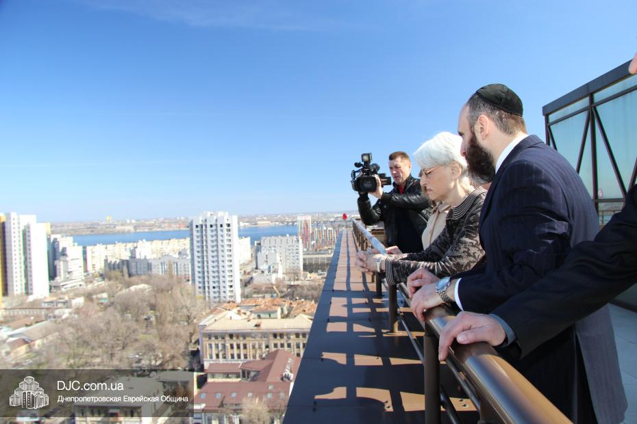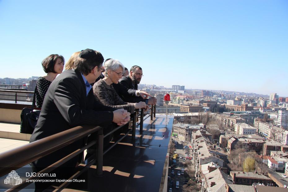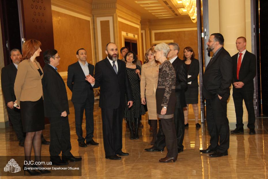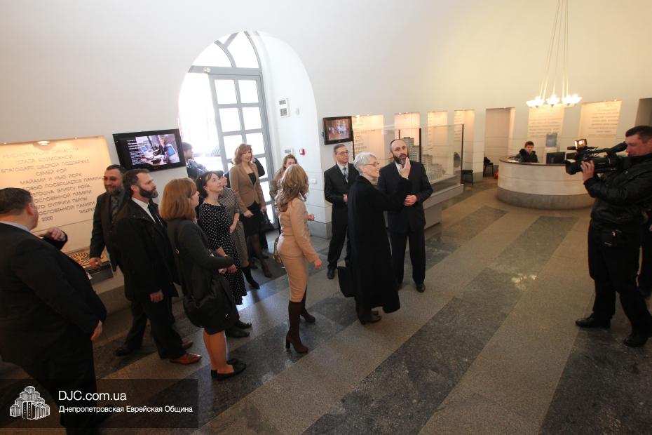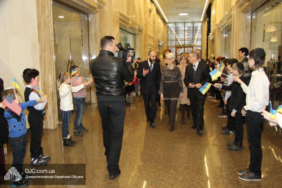 Директор еврейской общины Зелиг Брез рассказал госпоже Шерман об истории еврейской общины, еврейского возрождения, которое началось с приездом посланников Любавического Ребе раввина Шмуэля Каминецкого и его супруги Ханы, о том, как живет еврейская община Днепропетровска. Госпожа Шерман осмотрела Центральную синагогу «Золотая Роза», крупнейший в мире еврейский центр «Менора» и музей «Память еврейского народа и Холокост в Украине».