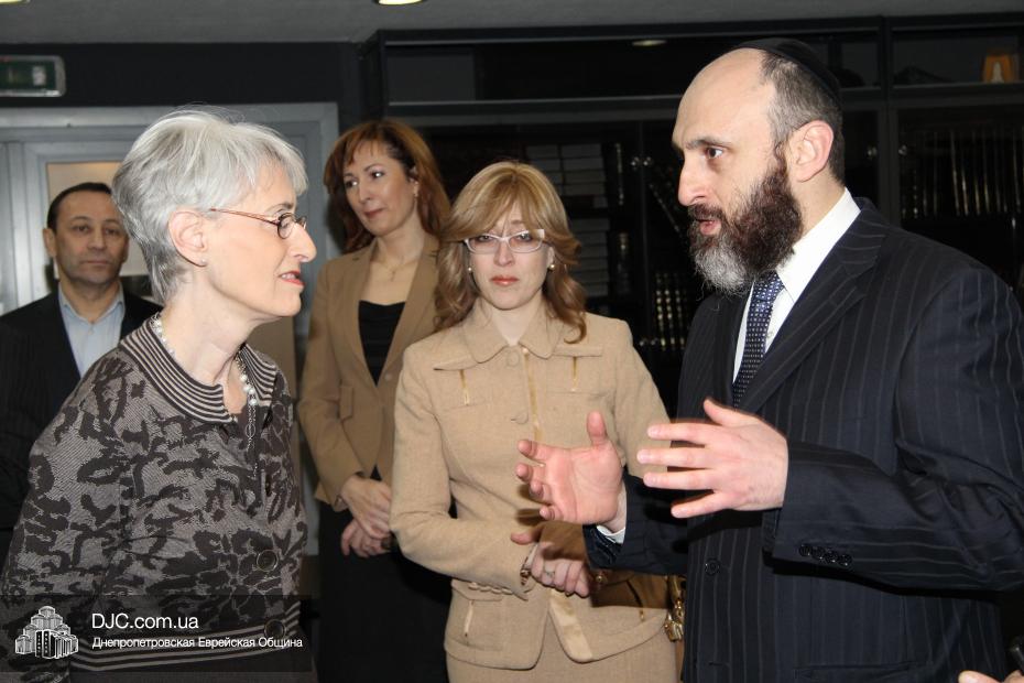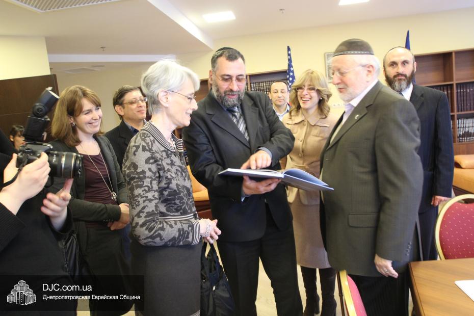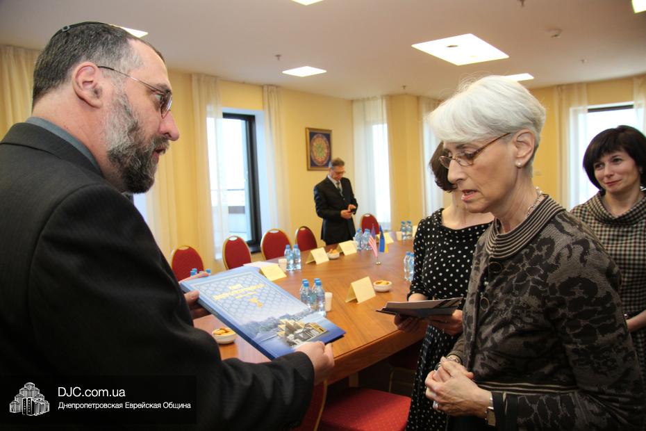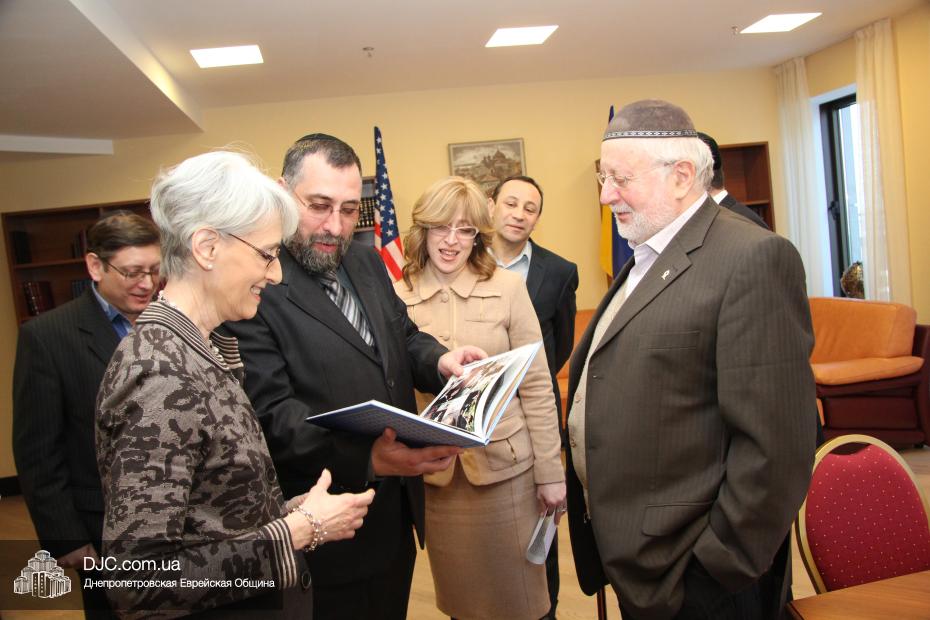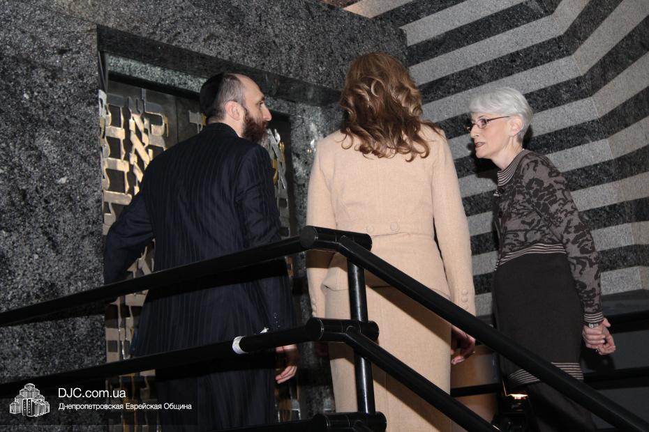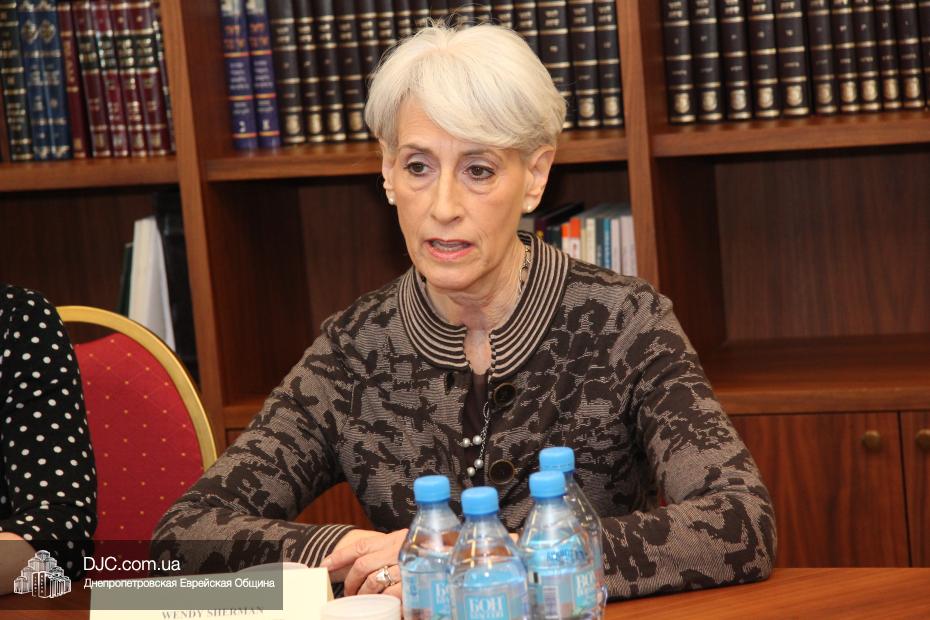 Заместитель государственного секретаря Соединенных Штатов Америки госпожа Венди Шерман (Mrs.Wendy Sherman, Under Secretary of State for Political Affairs) в рамках своего визита в Днепропетровскую область посетила Днепропетровскую еврейскую общину и провела встречу с ее руководством.