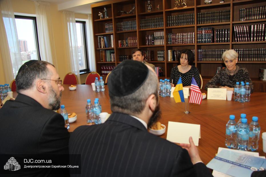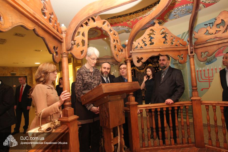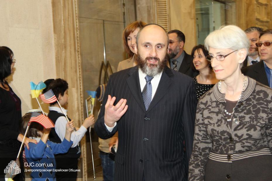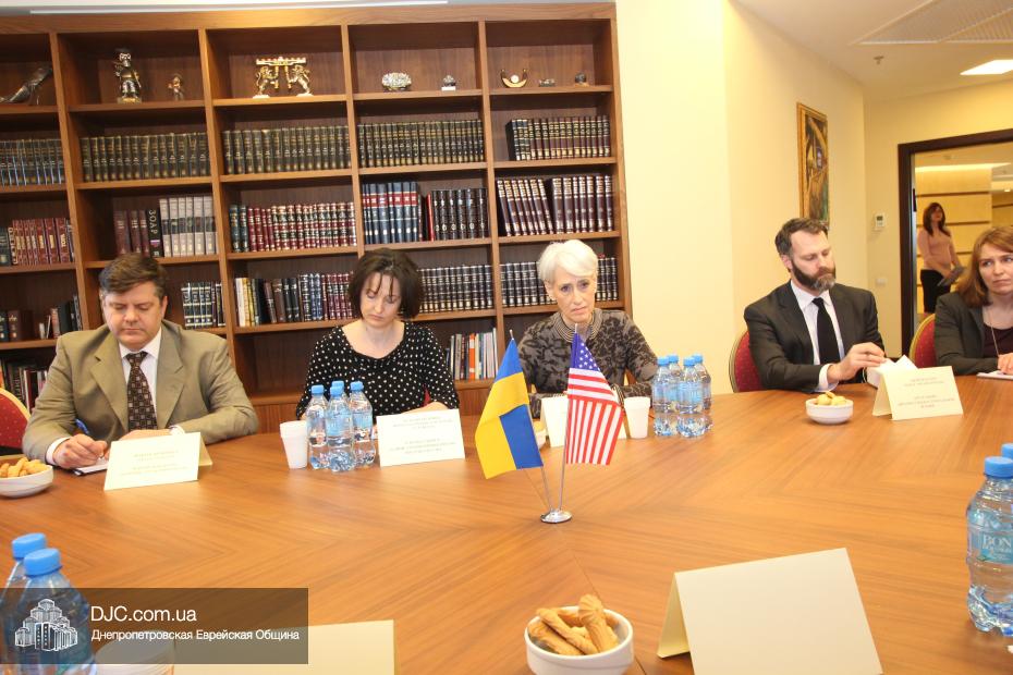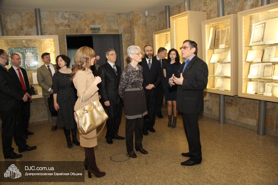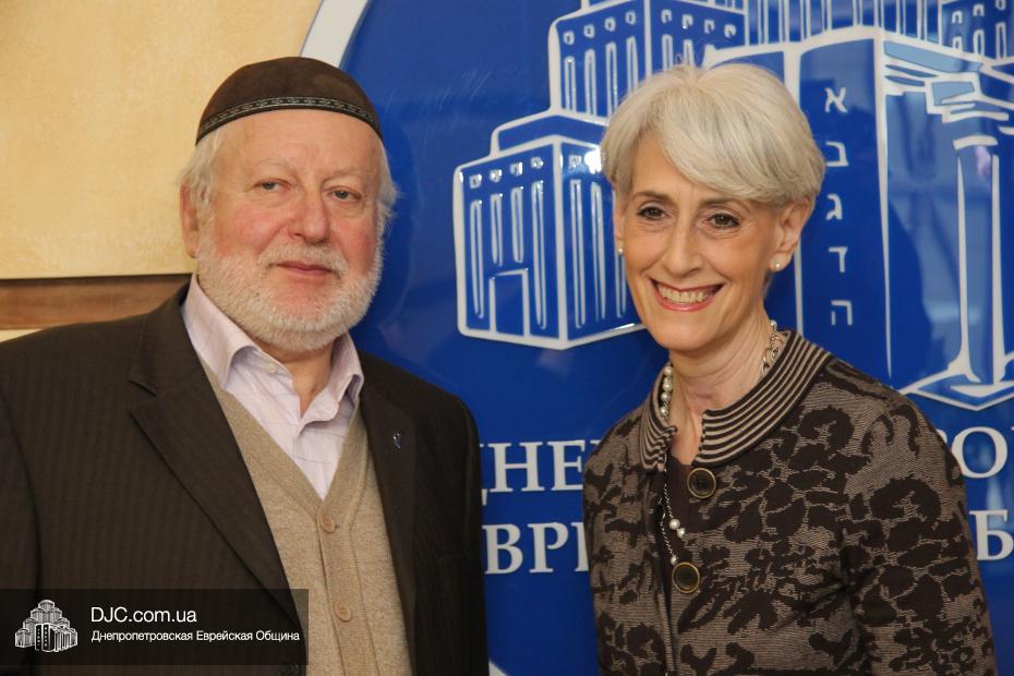 Заместитель государственного секретаря Соединенных Штатов Америки госпожа Венди Шерман (Mrs.Wendy Sherman, Under Secretary of State for Political Affairs) в рамках своего визита в Днепропетровскую область посетила Днепропетровскую еврейскую общину и провела встречу с ее руководством.