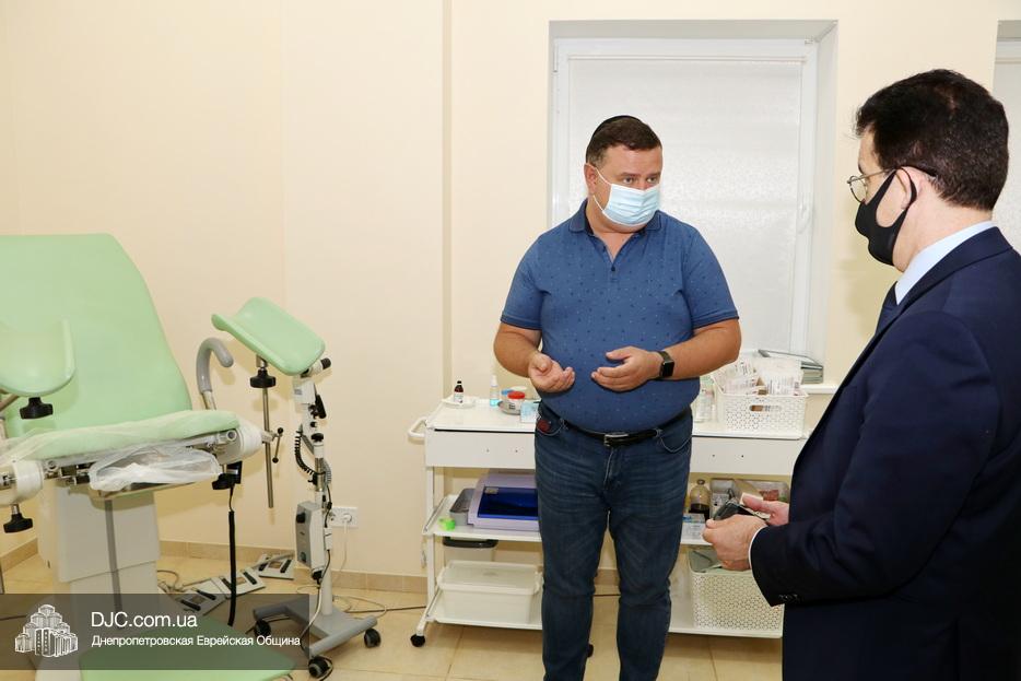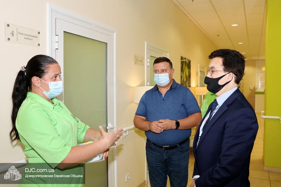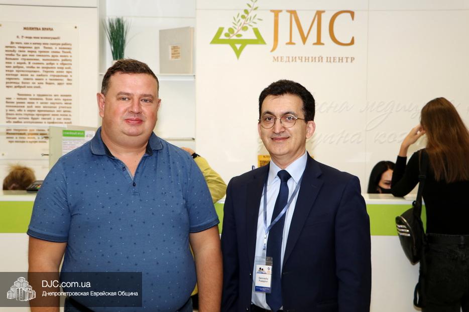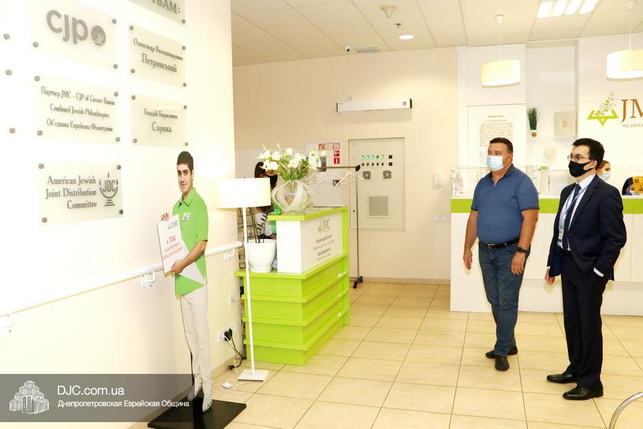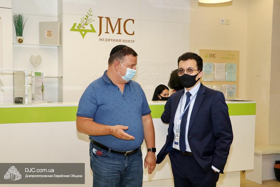 В один из дней своего визита в Днепр профессор Гарвардской медицинской школы Геннадий Фузайлов посетил Еврейский Медицинский Центр «JMC», работу которого много лет курирует Гарвардская Медицинская школа (Harvard Medical School , Бостон, США), в рамках многофункционального «Кегила-проджект», реализуемого совместно Еврейской общиной Днепра и еврейской общиной Большого Бостона (штат Массачусетс, США). Ознакомил гостя с работой Еврейского Медицинского Центра профессор Александр Родинский, глава правления и директор «JMC». Он рассказал о его возможностях по предоставлению качественных услуг доказательной медицины не только членам общины, но и всему населению города и участии в национальных и международных медицинских проектах на самом высоком профессиональном уровне. Затем профессору Фузайлову представили «Центр массовой вакцинации JMC», показав весь процесс вакцинации, начиная от регистрации и заканчивая самой прививкой, условия хранения препаратов, а также меры, принимаемые в экстренных ситуациях. В ходе встречи проходило обсуждение перспектив дальнейшего сотрудничества.