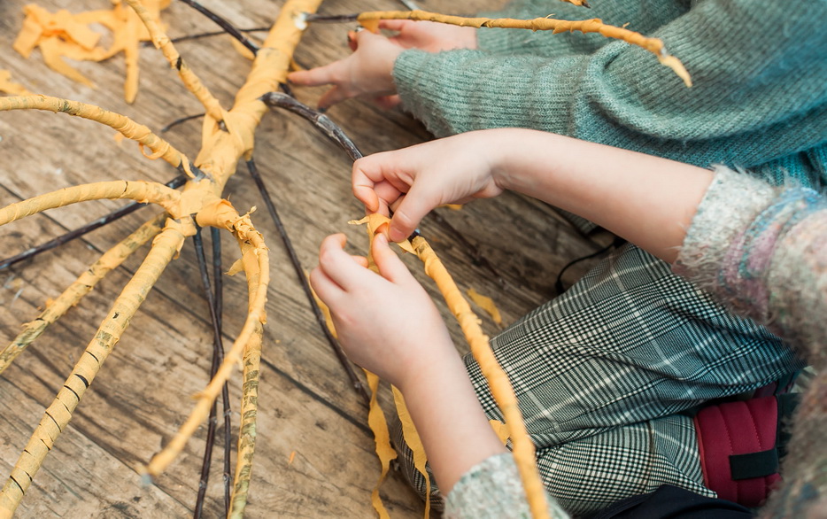 — Ребята с желтыми банданами решили украсить дерево цветастыми магнолиями.