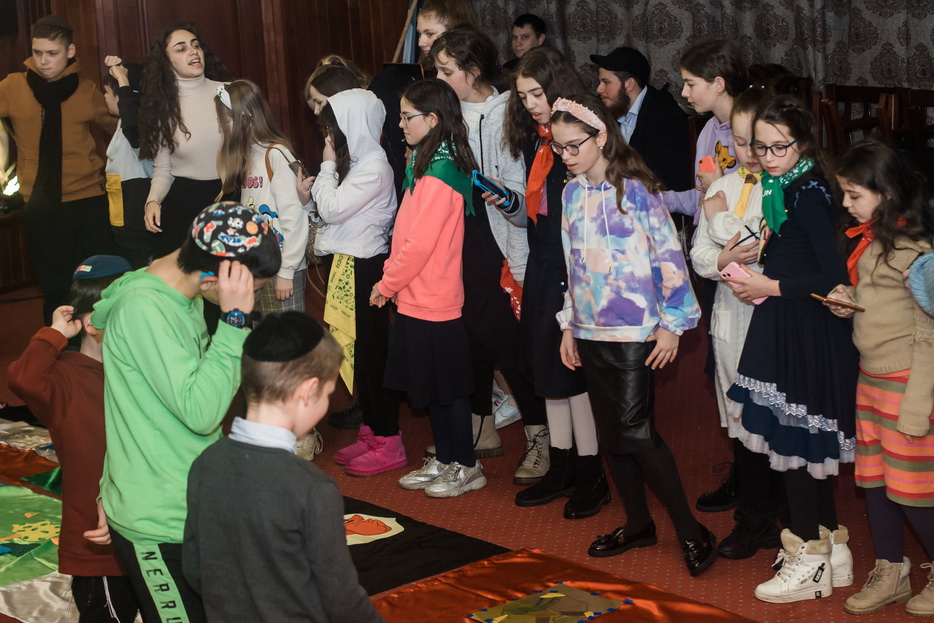 Как уже сообщал наш сайт, мероприятия лагеря были построены вокруг идеи «лифта времени», который переносил участников из эпохи в эпоху, позволяя в игровой форме знакомиться с фундаментальными понятиями иудаизма. Про первые два дня в лагере мы рассказывали здесь https://djc.com.ua/news/view/new/?id=24157&lang=ru, а в день третий «лифт времени» перенес всех в эру Машиаха, кульминацией которого стало вечернее мероприятие, подробности о котором нашему сайту рассказала Наоми Куц: