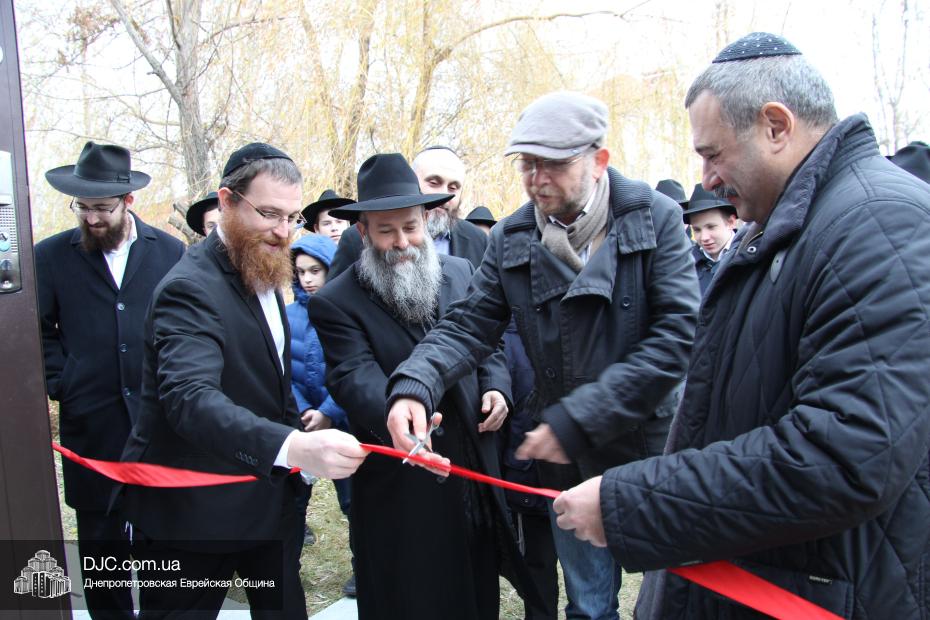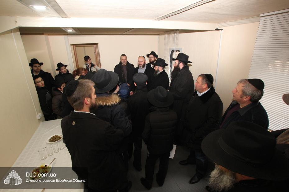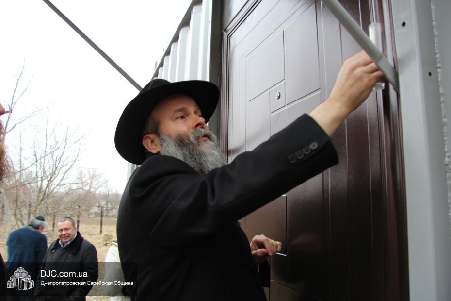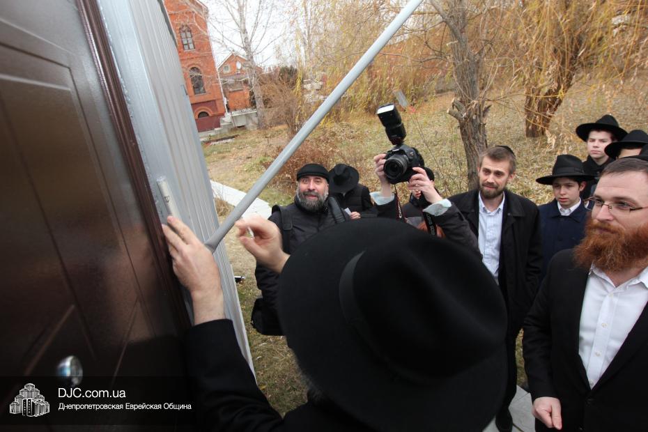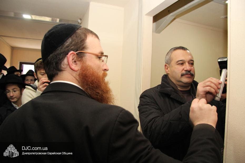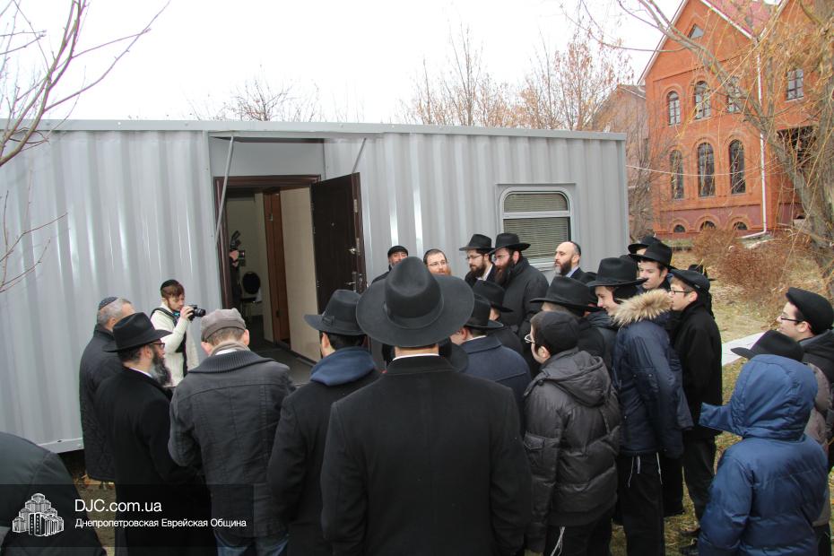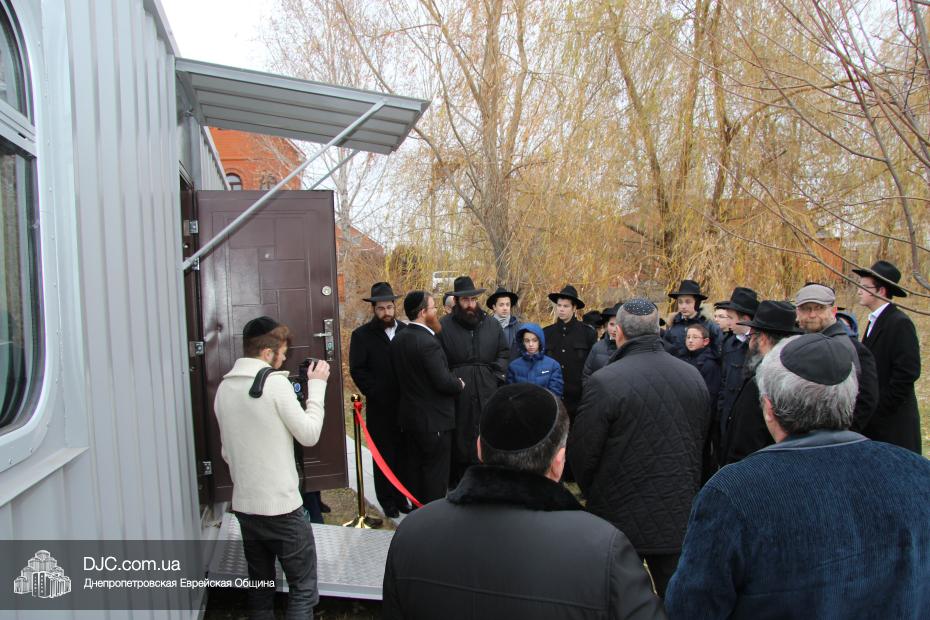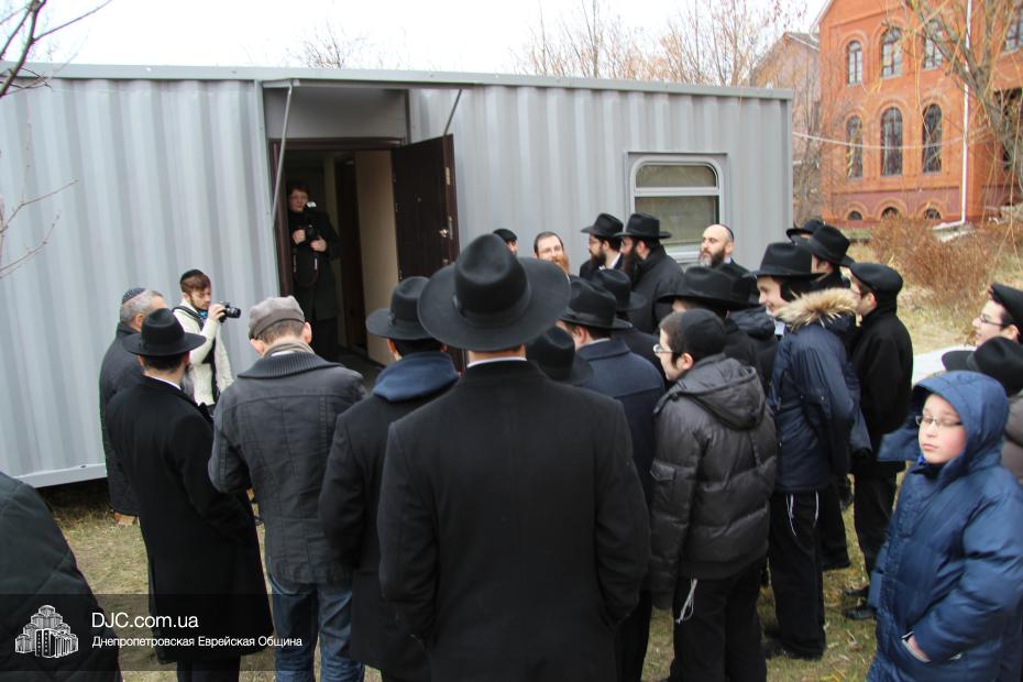 Честь перерезать ленточку у входа в здание и прикрепить мезузы к косякам дверей была предоставлена Главному раввину Днепропетровска Шмуэлю Каминецкому, автору идеи и разработки подобных жилых модулей Борису Фельдману и генеральному директору «Днепровагонремстрой» Леониду Таслицкому. Мезузу в домике также прикрепили член Попечительского Совета общины Давид Басс и машпия иешивы раввин Элиягу Хейфер, а от имени всех детей, которые в ней учатся, слова благодарности произнес мальчик из Одессы Леви-Ицхак Киржнер