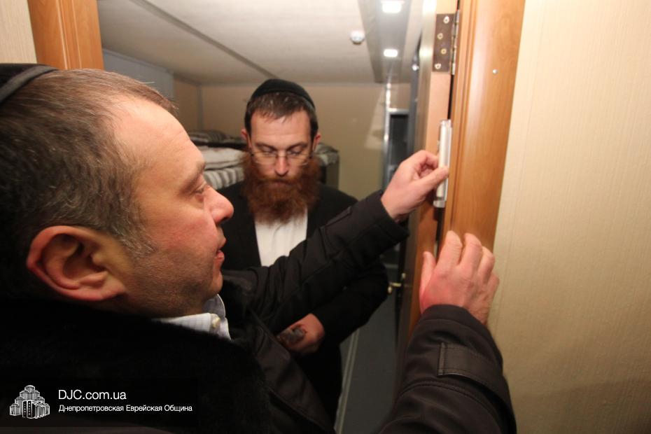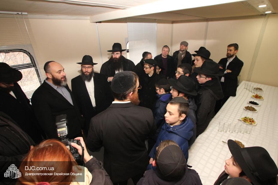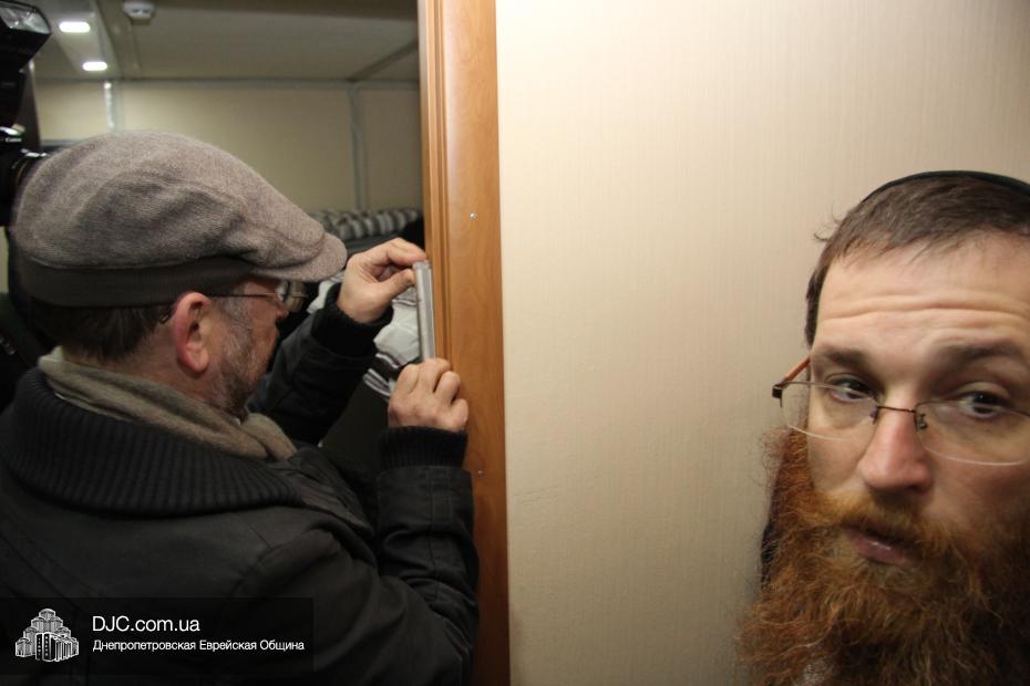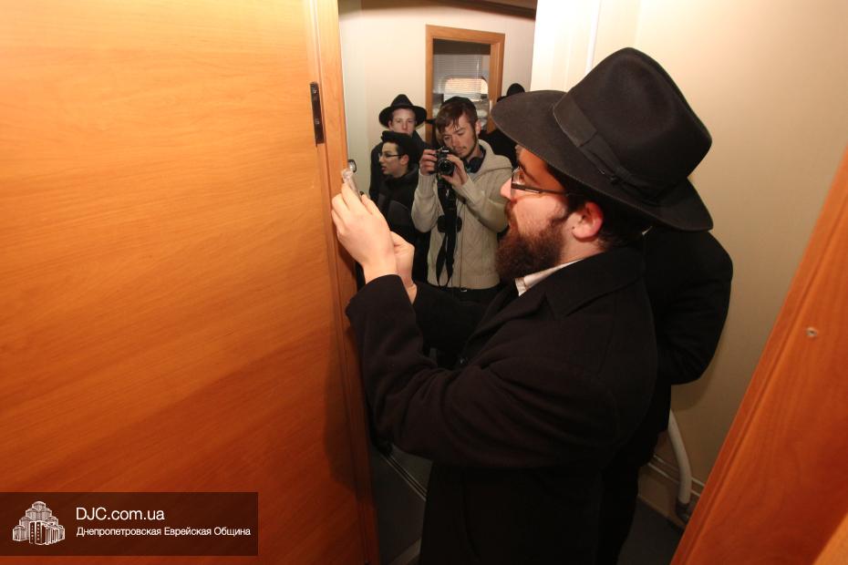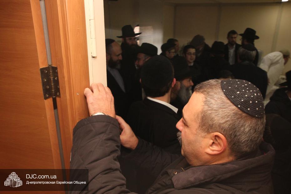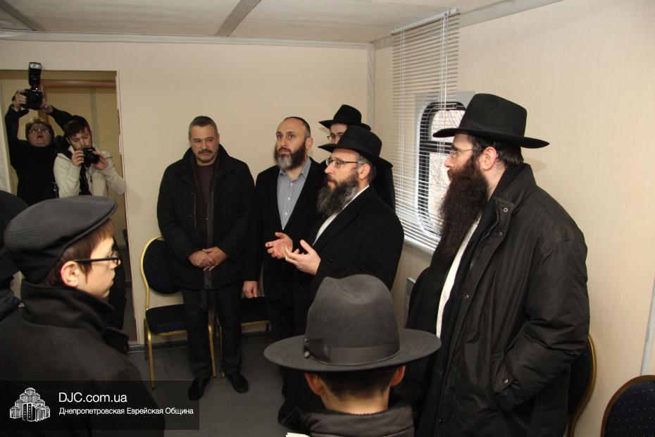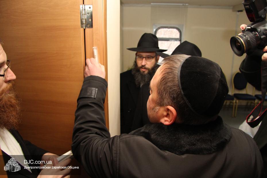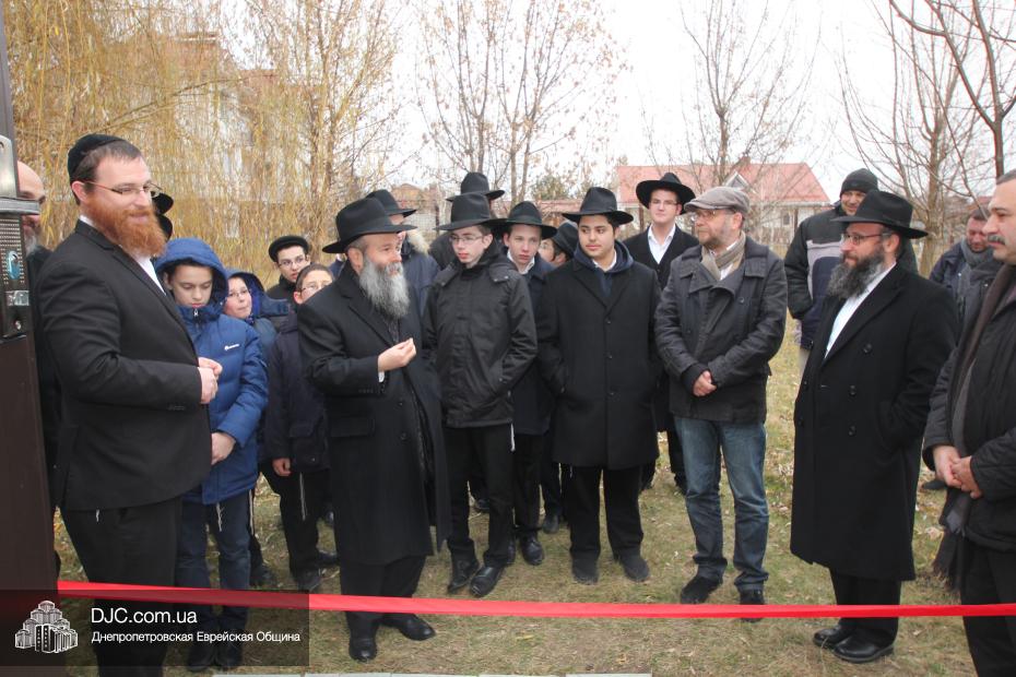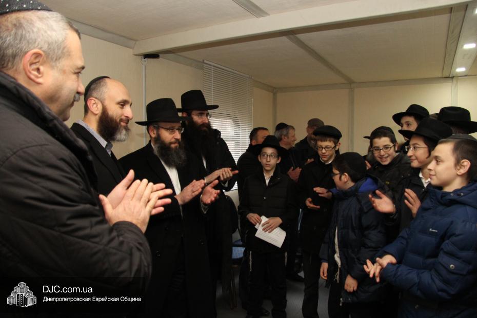Честь перерезать ленточку у входа в здание и прикрепить мезузы к косякам дверей была предоставлена Главному раввину Днепропетровска Шмуэлю Каминецкому, автору идеи и разработки подобных жилых модулей Борису Фельдману и генеральному директору «Днепровагонремстрой» Леониду Таслицкому. Мезузу в домике также прикрепили член Попечительского Совета общины Давид Басс и машпия иешивы раввин Элиягу Хейфер, а от имени всех детей, которые в ней учатся, слова благодарности произнес мальчик из Одессы Леви-Ицхак Киржнер