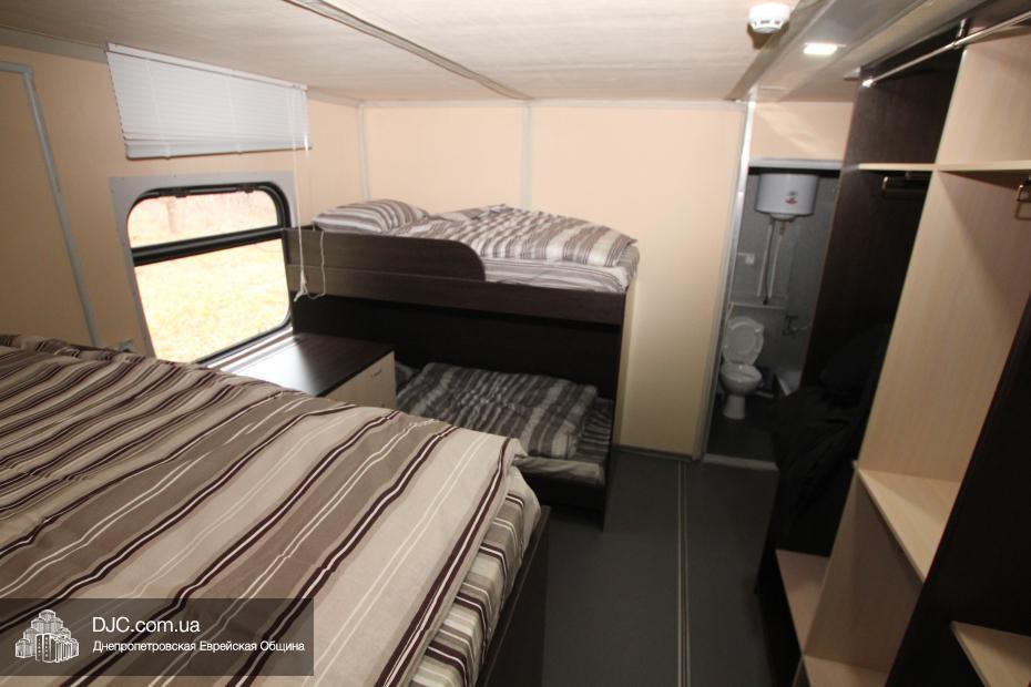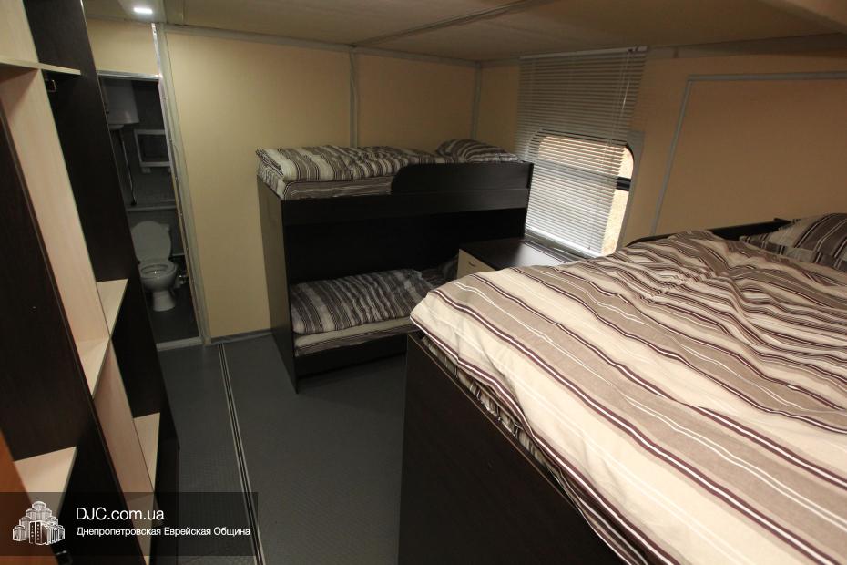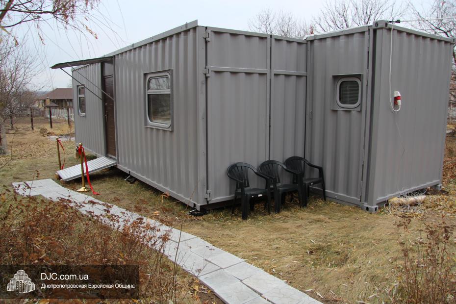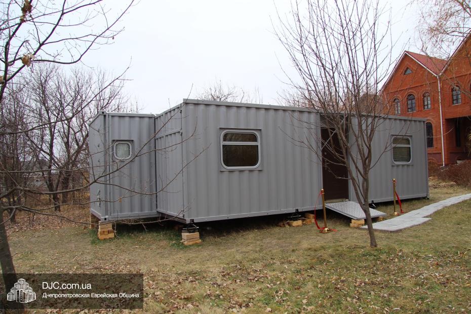 Этот сборный, легкотранспортируемый и устанавливаемый, но при этом очень удобный и функциональный дом – один из первых, созданных по уникальной разработке компании «Нью Арк Украина» в сотрудничестве с Днепропетровским вагоноремонтным заводом. В первоначальном виде он представляет собой стандартный 40-футовый контейнер, а за несколько часов, без особых усилий и специальных знаний, несколькими рабочими собирается в полностью оборудованный жилой модуль. В иешиву-ктану был поставлен вариант «общежитие», а еще уже налажено производство модулей «мобильная казарма» и «коттедж с салоном и двумя спальнями». В ближайшее время ассортимент вариантов буде еще расширен – будут представлены двухэтажные жилые, а также административные и торговые модули – так, чтобы за один-два дня можно было развернуть целый поселок в любом месте.