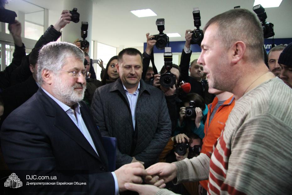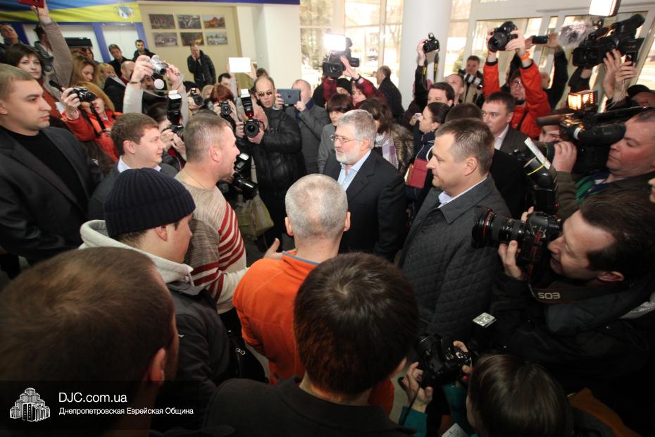 Игорь Коломойский продемонстрировал ключи от здания многочисленным журналистам и поблагодарил общественных активистов за высокий уровень гражданской сознательности, мужества и выдержки, за все то, что они делали и делают для сохранения мира и спокойствия в Днепропетровской области.