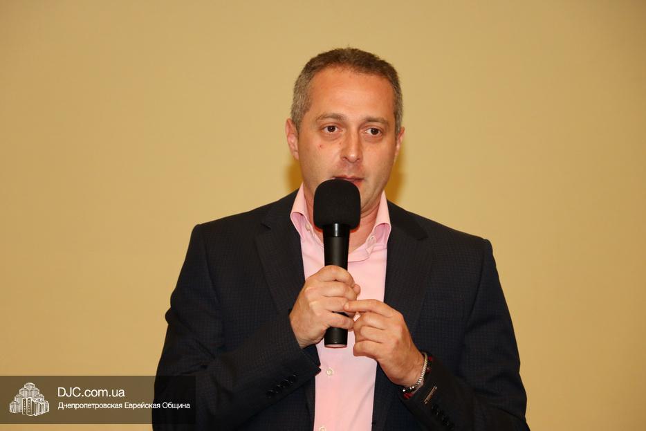 Далее Израильский Культурный Центр поздравил с началом двадцать седьмого сезона работы в нашем городе советник городского головы Днепра Олег Ростовцев, который подчеркнул, что город очень ценит то, что делает для укрепления связей с Еврейским Государством Правительственное Бюро при канцелярии премьер-министра Израиля «Натив» и пожелал ИКЦ проводить много ярких и красочных мероприятий, знакомя Днепр с самыми различными аспектами жизни в Израиле и его достижениями.