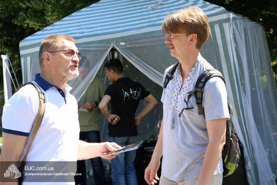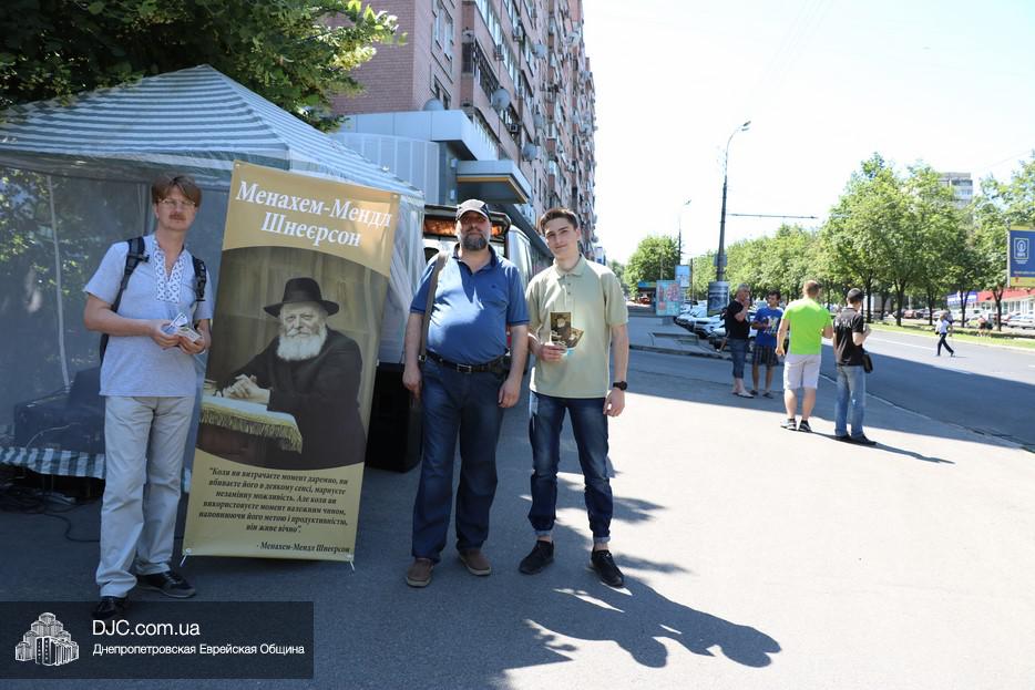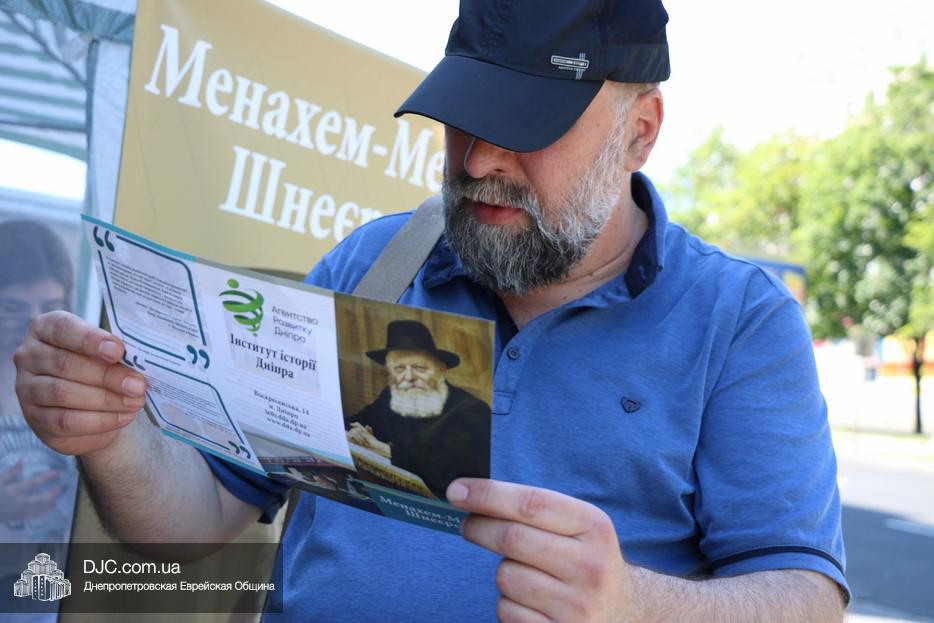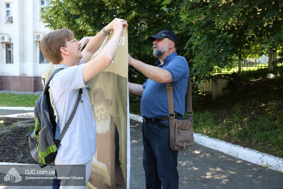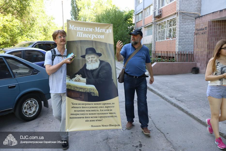 Волонтеры «Института истории Днепра»,  во главе с его директором, кандидатом исторических наук и известным общественным деятелем Олегом Репаном, установили информационную палатку на проспекте Александра Поля, возле здания налоговой администрации, приготовили красочный раздаточный материал и начали акцию путем прямой коммуникации. Все прохожие получали листовку и более развернутую брошюру с кратким рассказом о том, какое всемирное значение имеет фигура Менахема-Мендела Шнеерсона  и как этот духовный лидер связан с нашим городом.