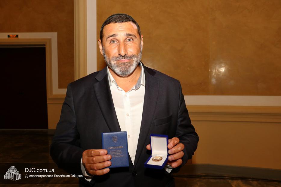 Награду Иосифу Гафту вручил депутат областного совета, глава комиссии по образованию Виктор Сыченко на большом мероприятии, посвященном подведению итогов летних программ УЕОЦ «Шатер Авраама» и детских лагерей «Выше радуги».