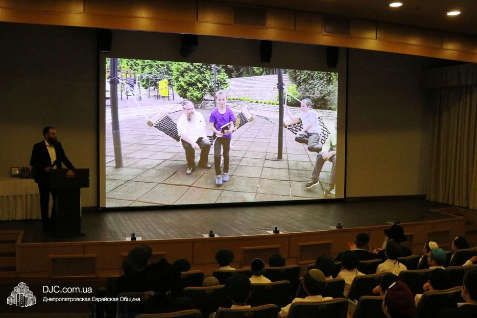 А затем было награждение по классам, вручение подарков, объявление заслуг и рукоплескание в честь каждого. Важной частью мероприятия были многие приятные сюрпризы и игры. А еще – увлекательные, прекрасно срежиссированные и снятые видеоролики о жизни иешивы.
