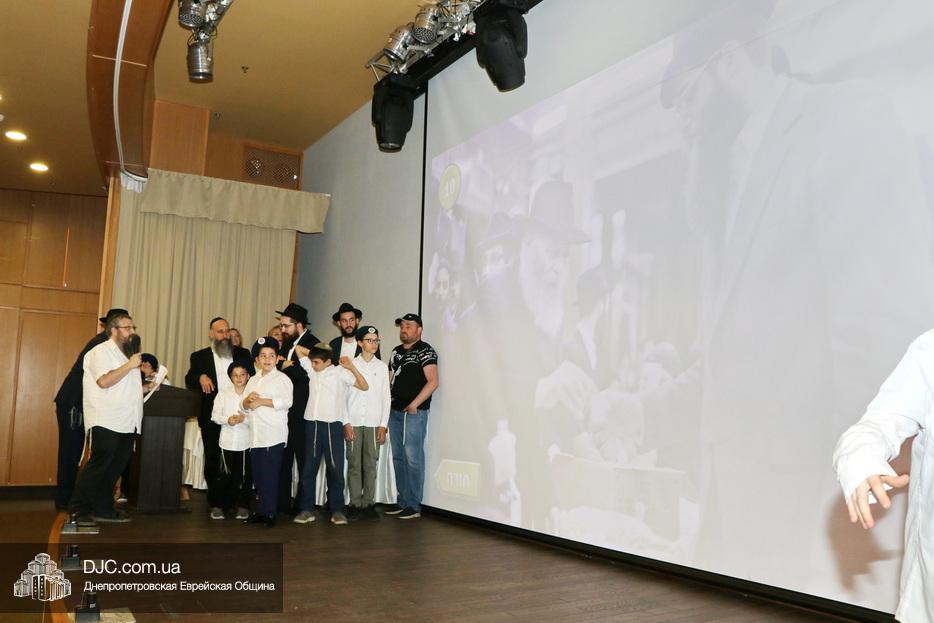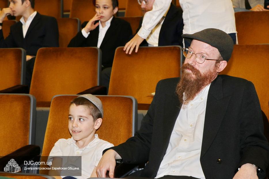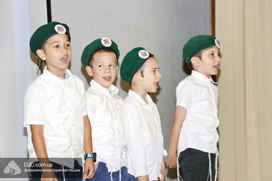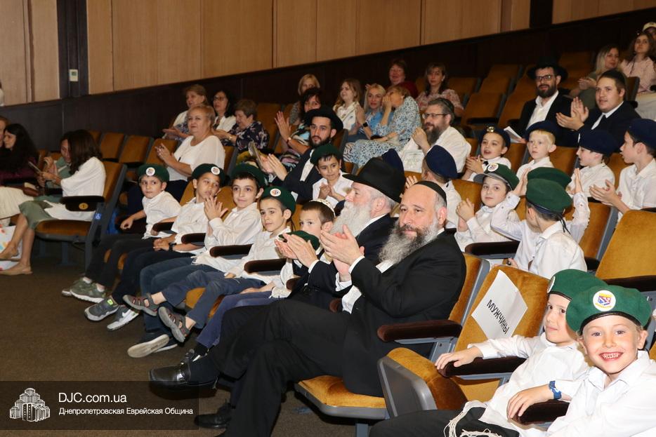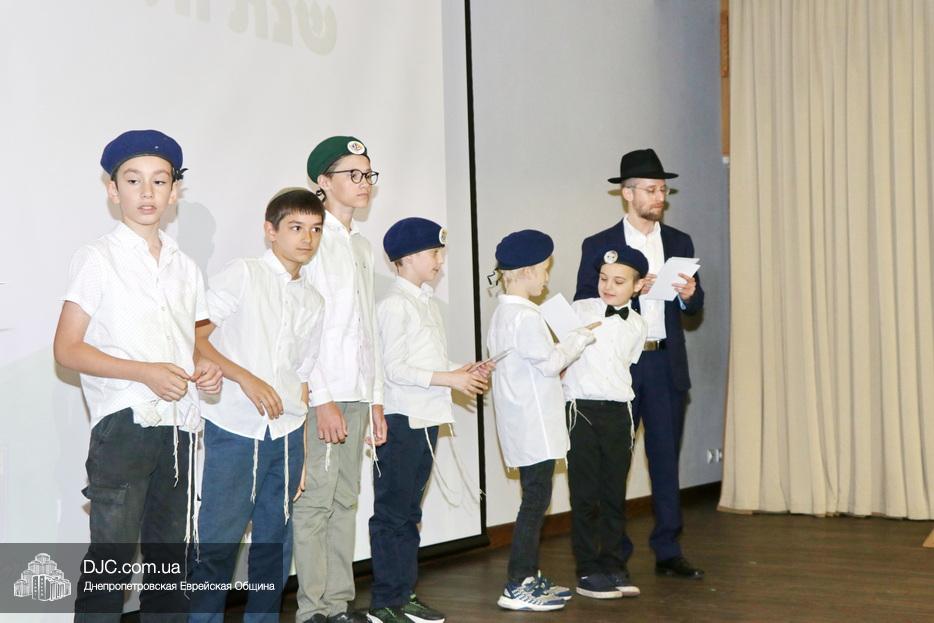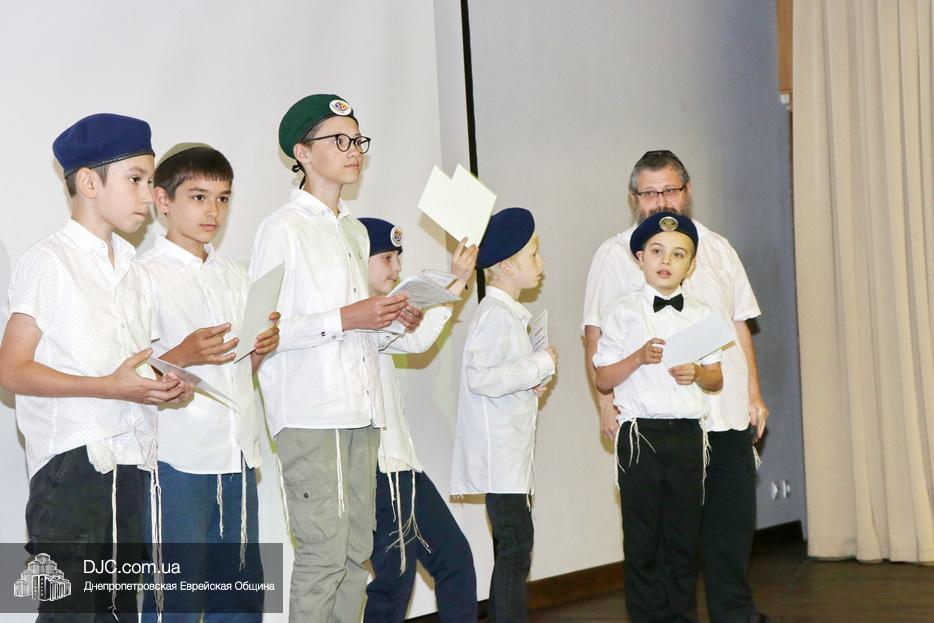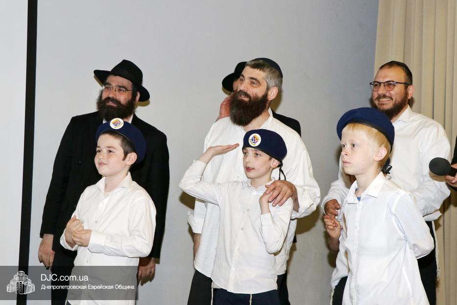 Ну, а затем, все поднялись на сцену для исполнения гимна иешивы в сопровождении всамделишного фейерверка: «Мы хотим выразить благодарность за помощь в проведении мероприятия и за весь учебный год Еврейской общине Днепра во главе с Главным раввином города и области Шмуэлем Каминецким и директору иешивы Хане Сегаль, – объявил ведущий праздника и преподаватель иешивы раввин Давид Васьковский, – ну а ребятам желаем с радостью продолжать свои победы и летом и встретиться в следующем учебном году».