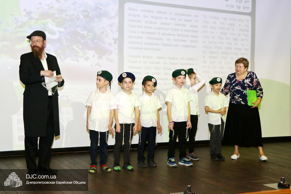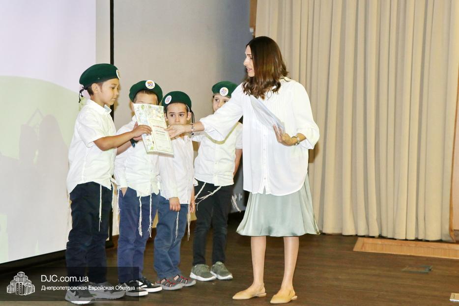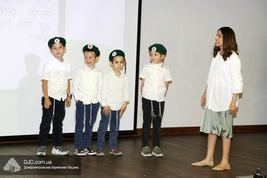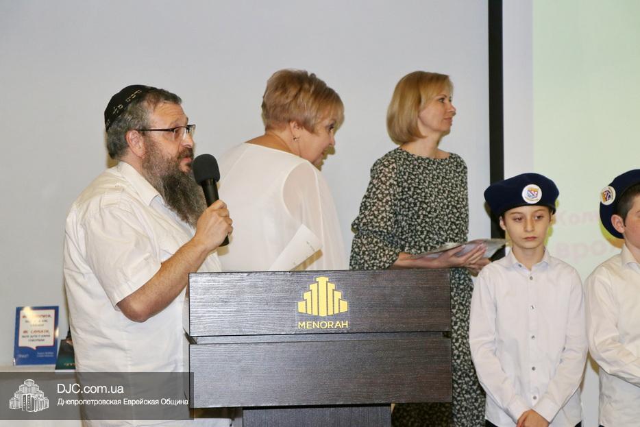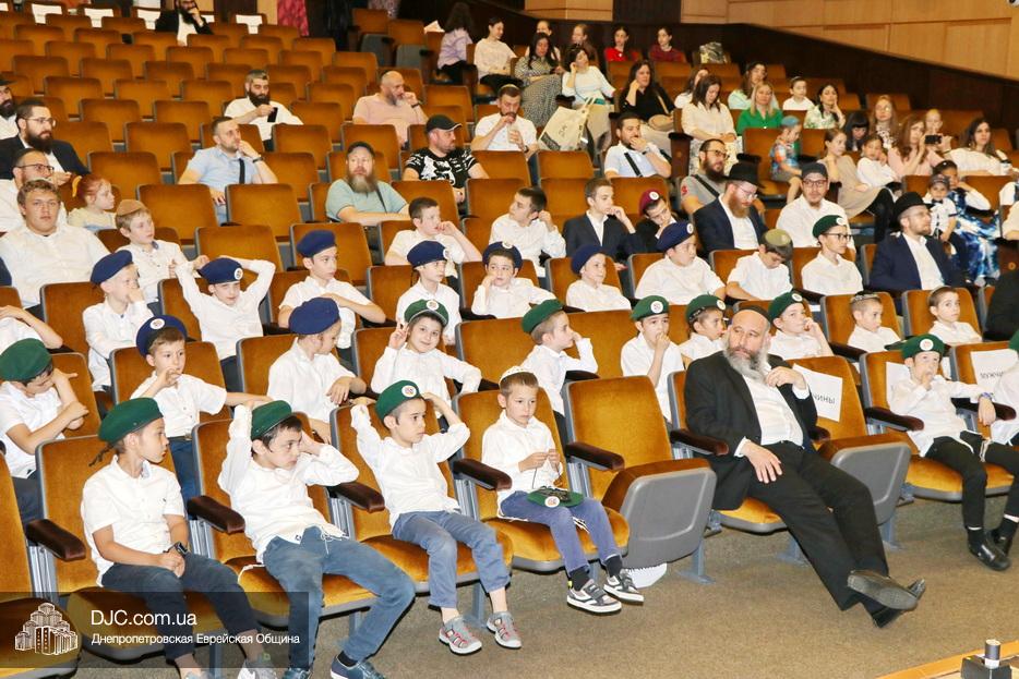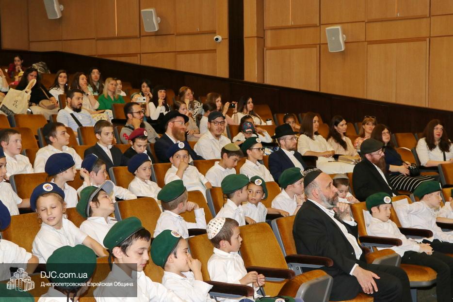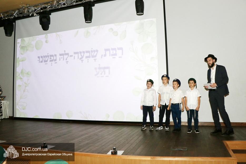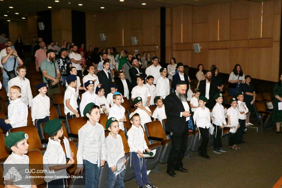 Ну, а затем, все поднялись на сцену для исполнения гимна иешивы в сопровождении всамделишного фейерверка: «Мы хотим выразить благодарность за помощь в проведении мероприятия и за весь учебный год Еврейской общине Днепра во главе с Главным раввином города и области Шмуэлем Каминецким и директору иешивы Хане Сегаль, – объявил ведущий праздника и преподаватель иешивы раввин Давид Васьковский, – ну а ребятам желаем с радостью продолжать свои победы и летом и встретиться в следующем учебном году».