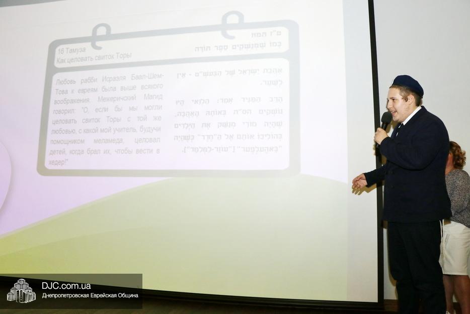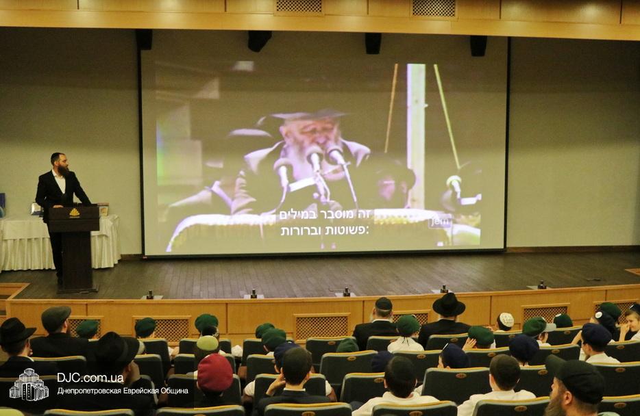 Итоги учебного года вначале лета подводит большинство образовательных программ, не стала исключением и Днепровская иешива имени раввина Леви-Ицхака Шнеерсона – итоговое мероприятие было проведено в зале «Синай» центра «Менора» и посвящено восьмидесятилетию «аЙом Йом», книги, которую составил Ребе Менахем-Мендел Шнеерсон по указанию предыдущего Ребе, и которая включает в себя хасидское изречение для каждого дня. Лейтмотивом праздника выбрали фразу «Когда пашут и сеют – урожай обязательно всходит».